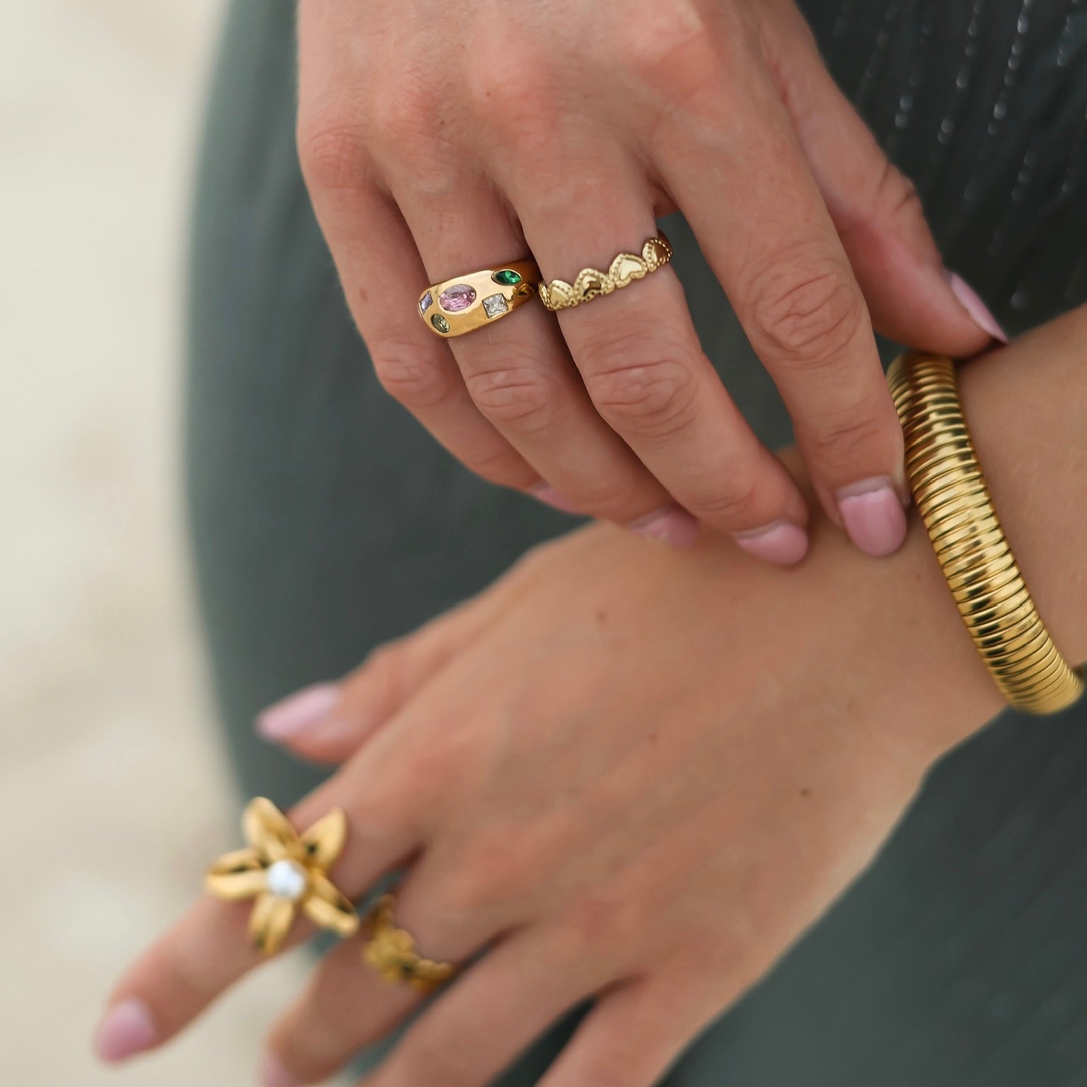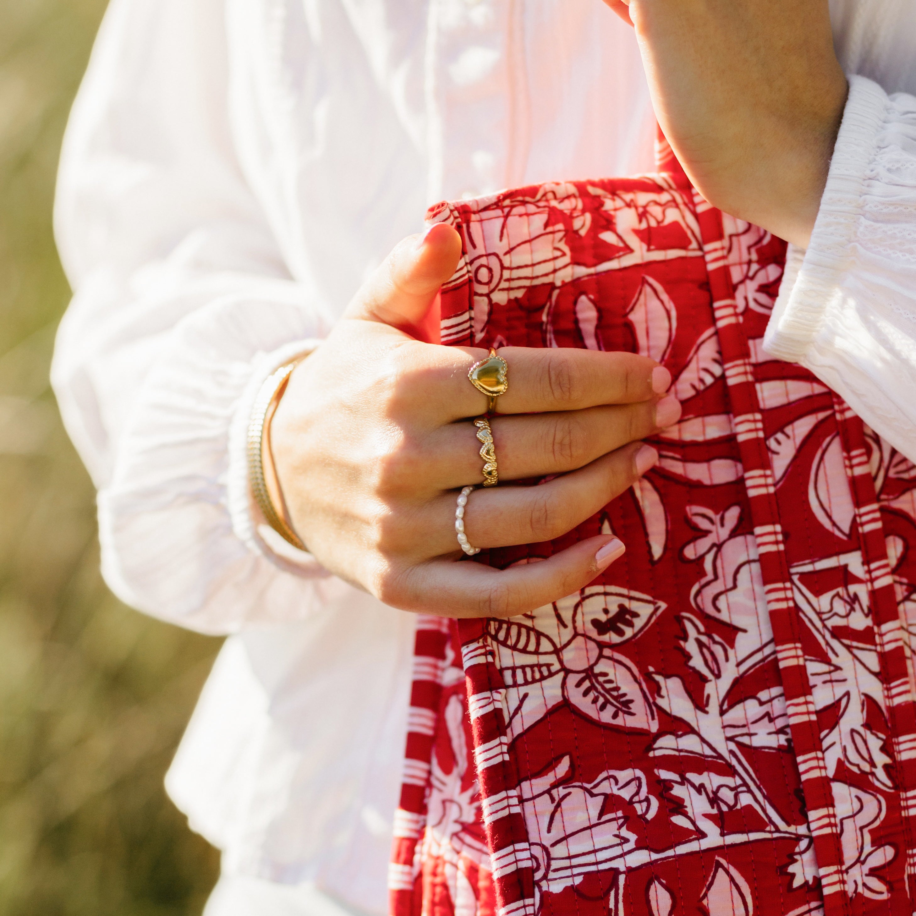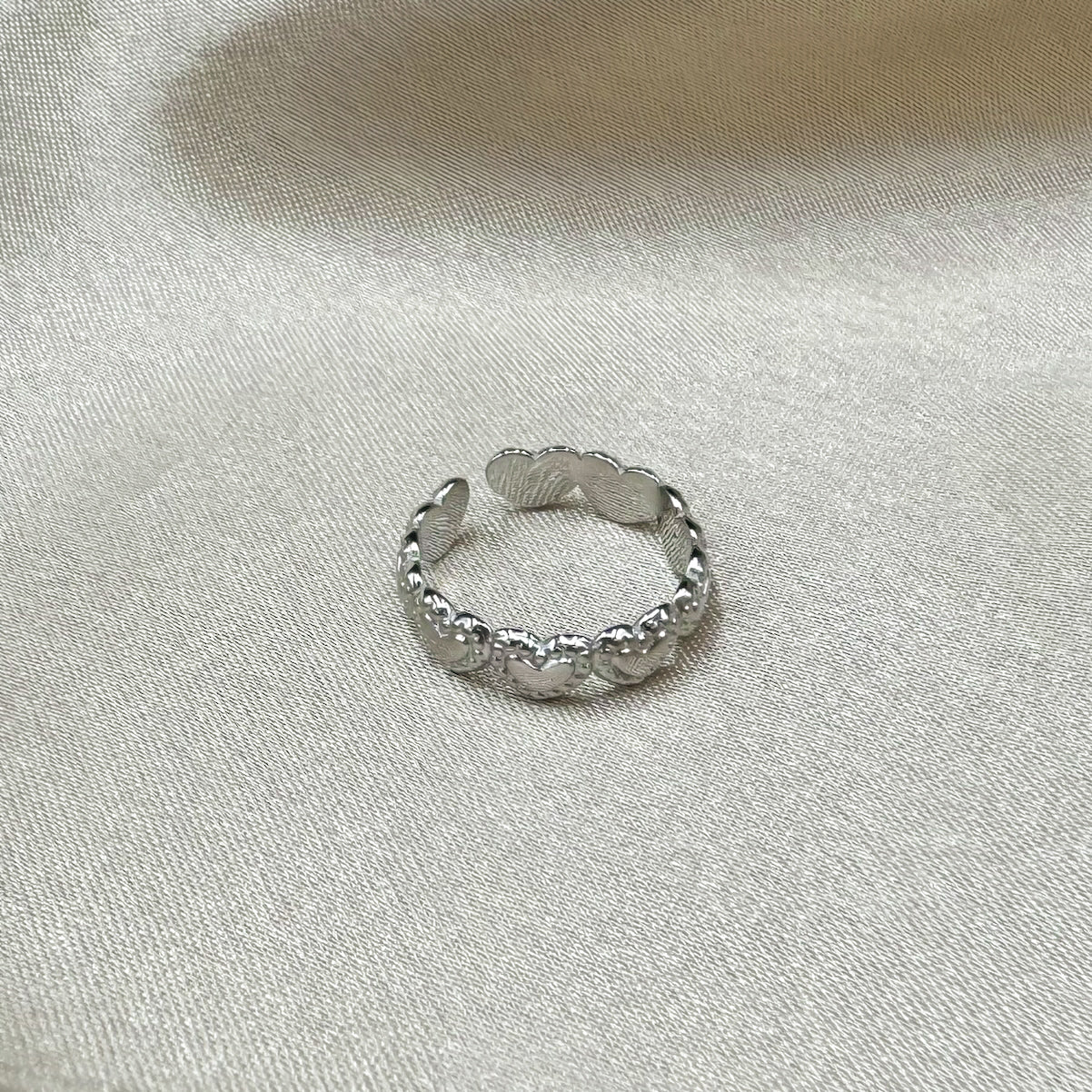 De Affinity Ring is een verstelbare ring van roestvrij staal, verkrijgbaar in goud én zilver. De subtiele hartvormige details rondom zorgen voor een romantische, maar moderne uitstraling. Draag hem solo voor een minimal look of combineer met andere ringen voor een stijlvolle ring stack. Een tijdloos sieraad dat elke outfit een touch of love geeft.
