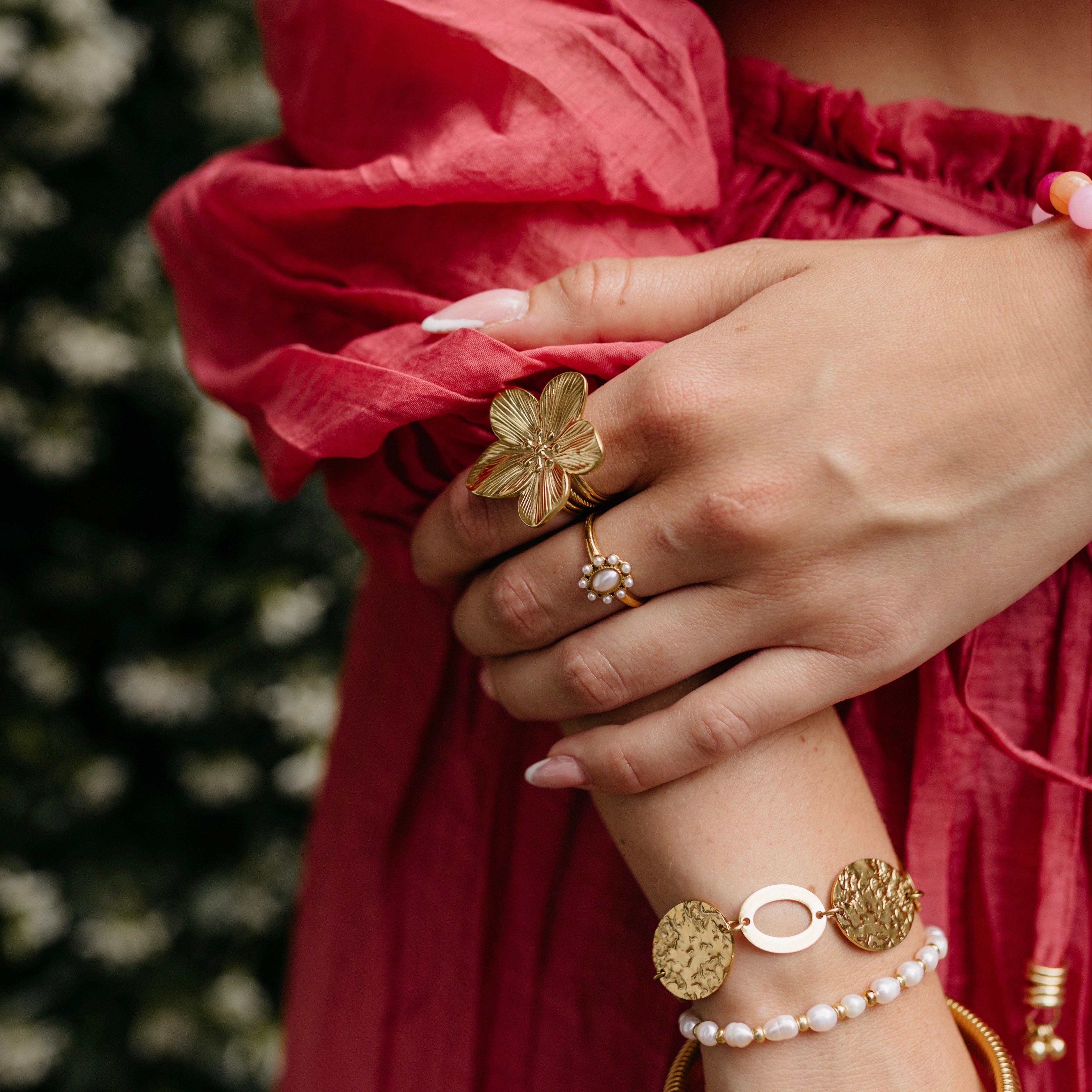 Refresh availabilityDe Blooming Ring is een echte statement piece die niet te missen is. De grote bloem zorgt voor een blooming effect dat elke look een lenteachtige vibe geeft. Gemaakt van roestvrij staal, verstelbaar voor de perfecte fit en verkrijgbaar in zowel goud als zilver.