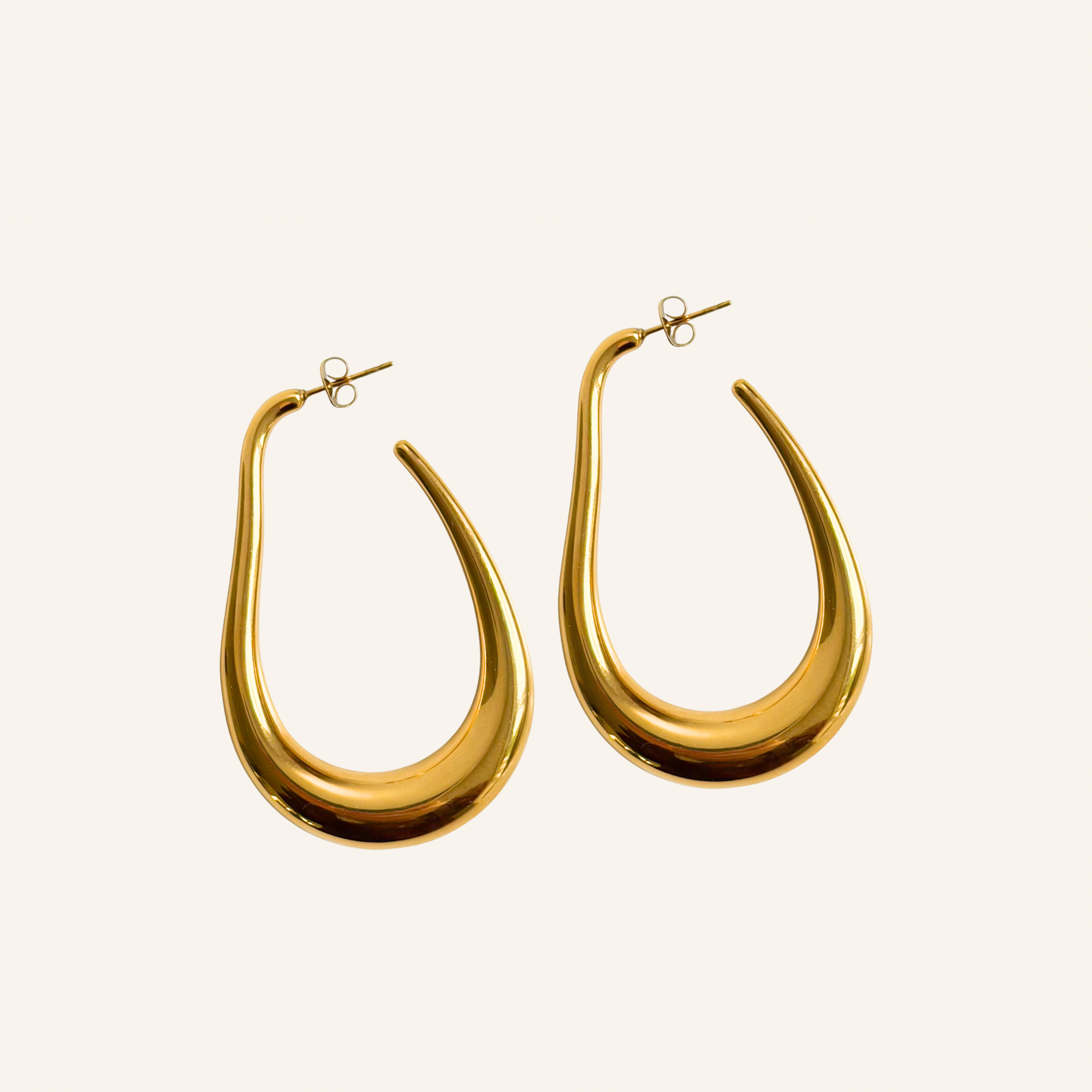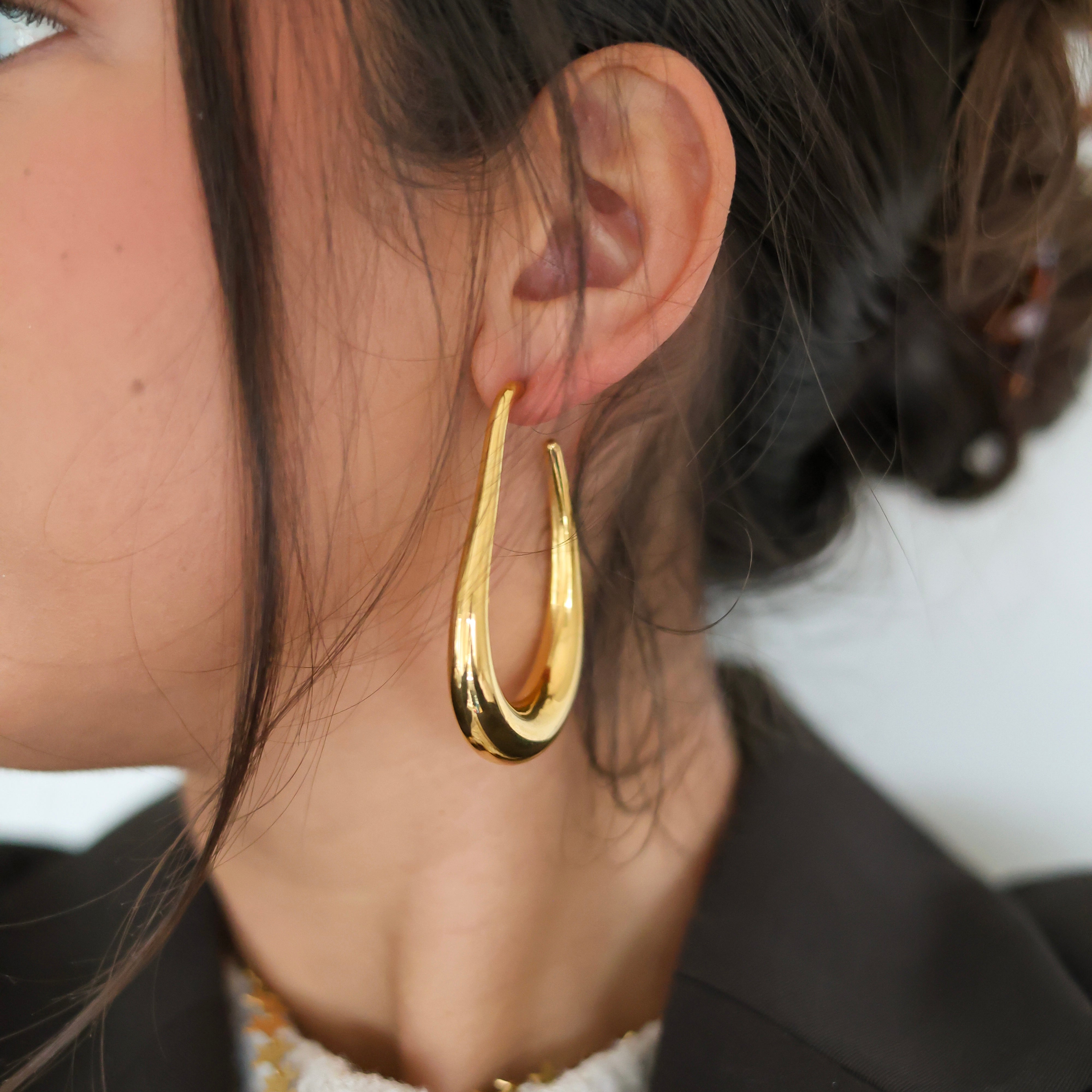 Deze langwerpige druppel hoop oorbellen zijn een must-have voor liefhebbers van trendy statement sieraden. De druppelvormige rondingen maken ze speels en elegant tegelijk, terwijl het stainless steel in goud en zilver zorgt voor een luxe touch. Groot, maar licht gewicht. Perfect om je party look te laten stralen of je dagelijkse outfit een fashion-forward twist te geven.