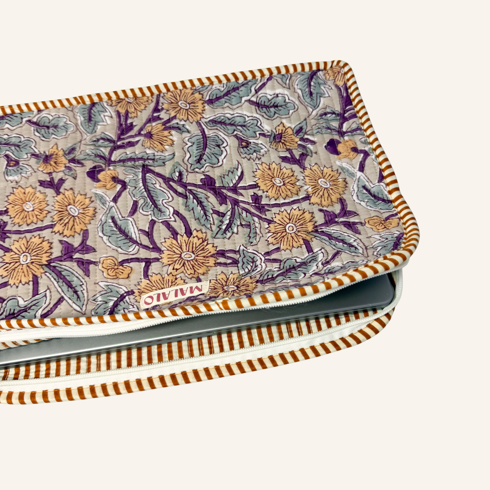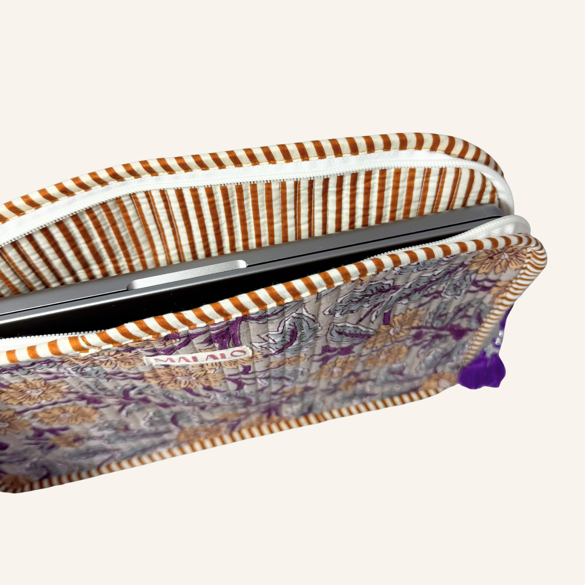 Een trendy laptophoes met bloemenprint is ideaal om je laptop stijlvol mee te nemen naar werk of school. Deze beige laptophoes met paarse bloemen is een echte eye-catcher en sluit met een stevige ritssluiting. Praktisch, kleurrijk en perfect te combineren met de bijpassende Meadow Haze Bag en Meadow Haze Toiletry Bags in dezelfde bloemenprint.