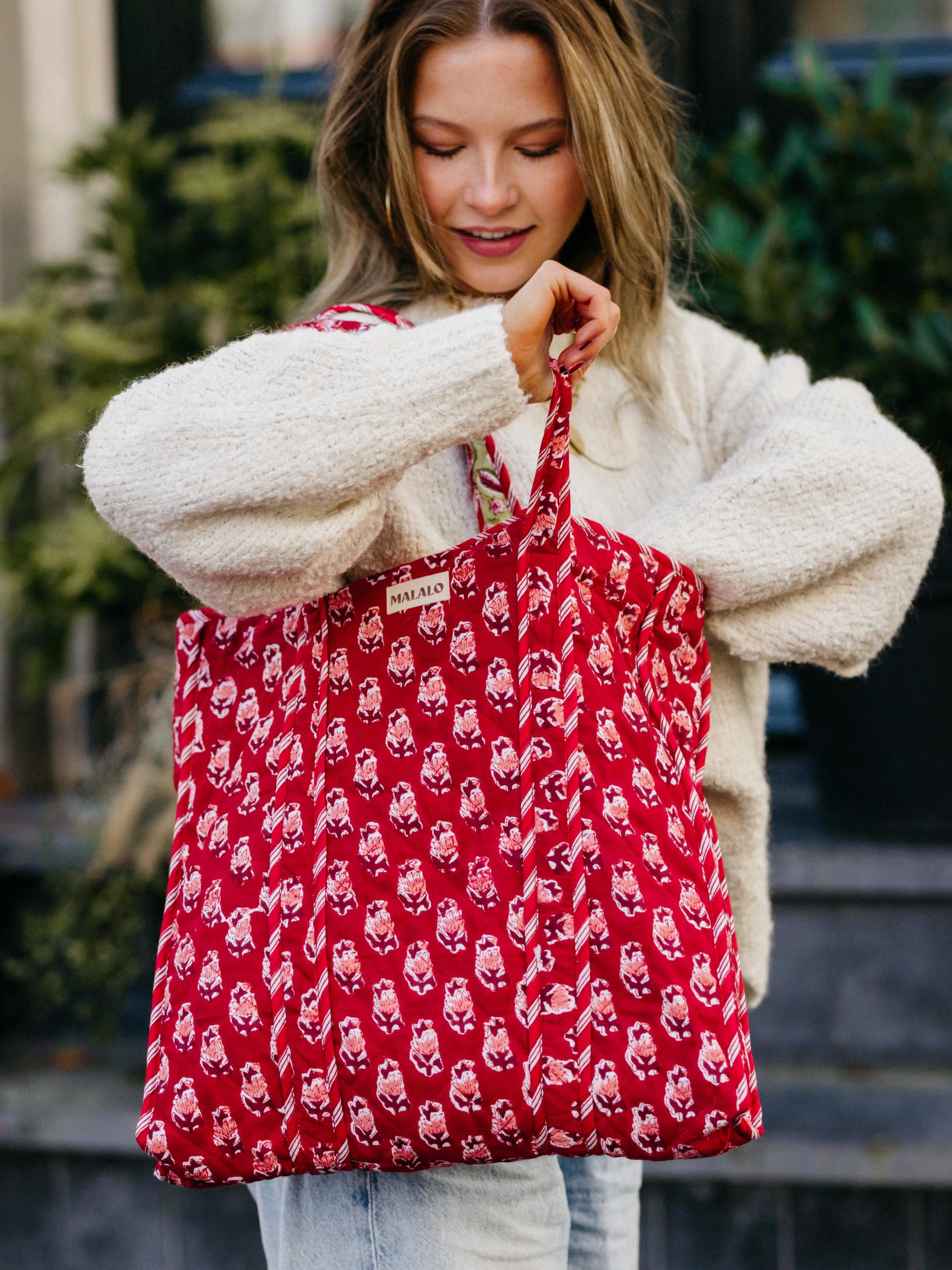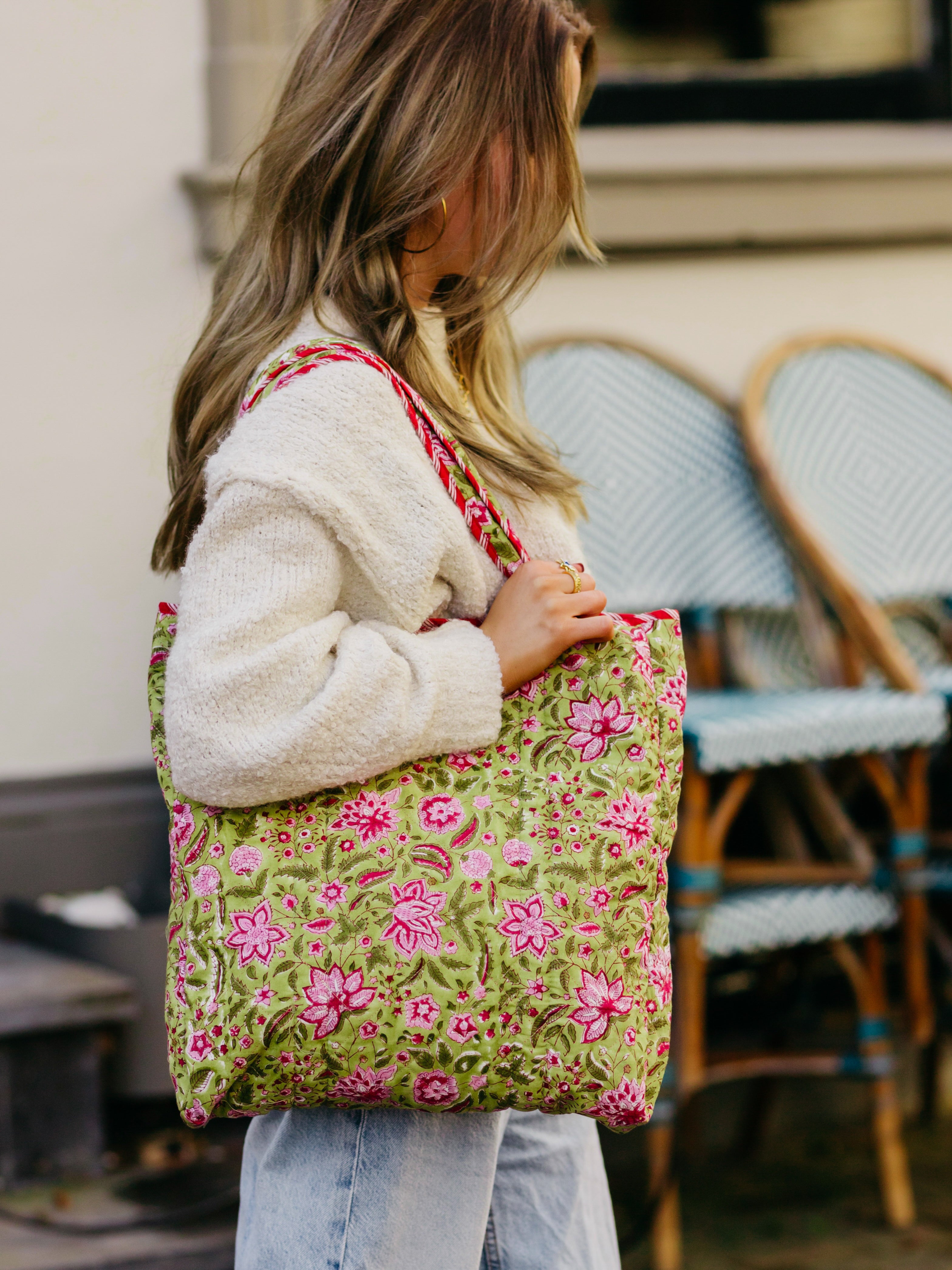 De Burgundy Bliss Reversible Bag is een stijlvolle bordeauxrode totebag met een subtiele bloemenprint – en het mooiste: dubbel zo veel plezier! Wissel van look in een handomdraai met deze omkeerbare tas. De binnenkant heeft een frisse groene tint met roze bloemen, perfect voor wie houdt van variatie en functionaliteit in één tas. Of je nu onderweg bent naar werk of een dagje uit gaat, deze reversible bag past zich moeiteloos aan jouw stijl en stemming aan.