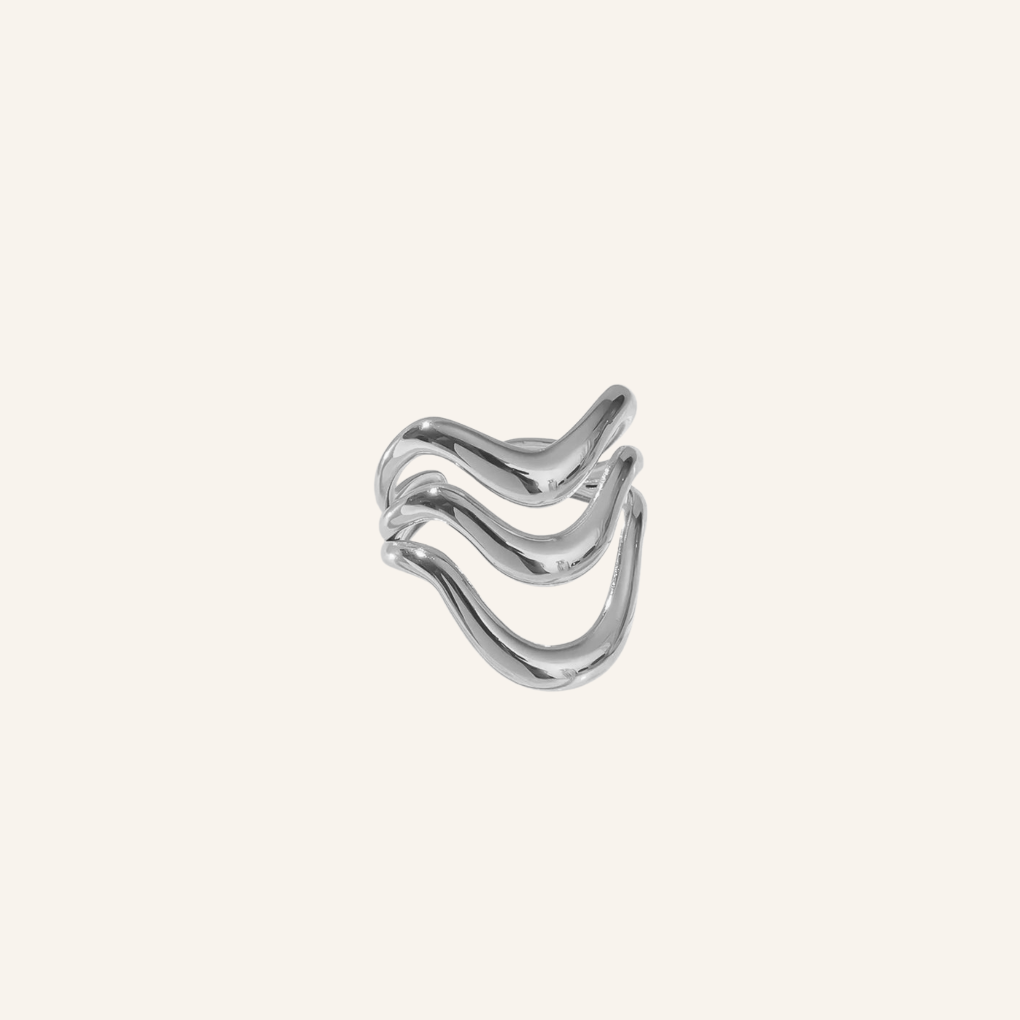 Met drie golvende lagen is deze verstelbare ring van roestvrij staal perfect voor wie op zoek is naar een eyecatcher! De losse vormen geven het design een speelse flow en zorgen voor een opvallende maar classy uitstraling. Verkrijgbaar in goud en zilver en ideaal om te matchen met je andere favoriete ringen.