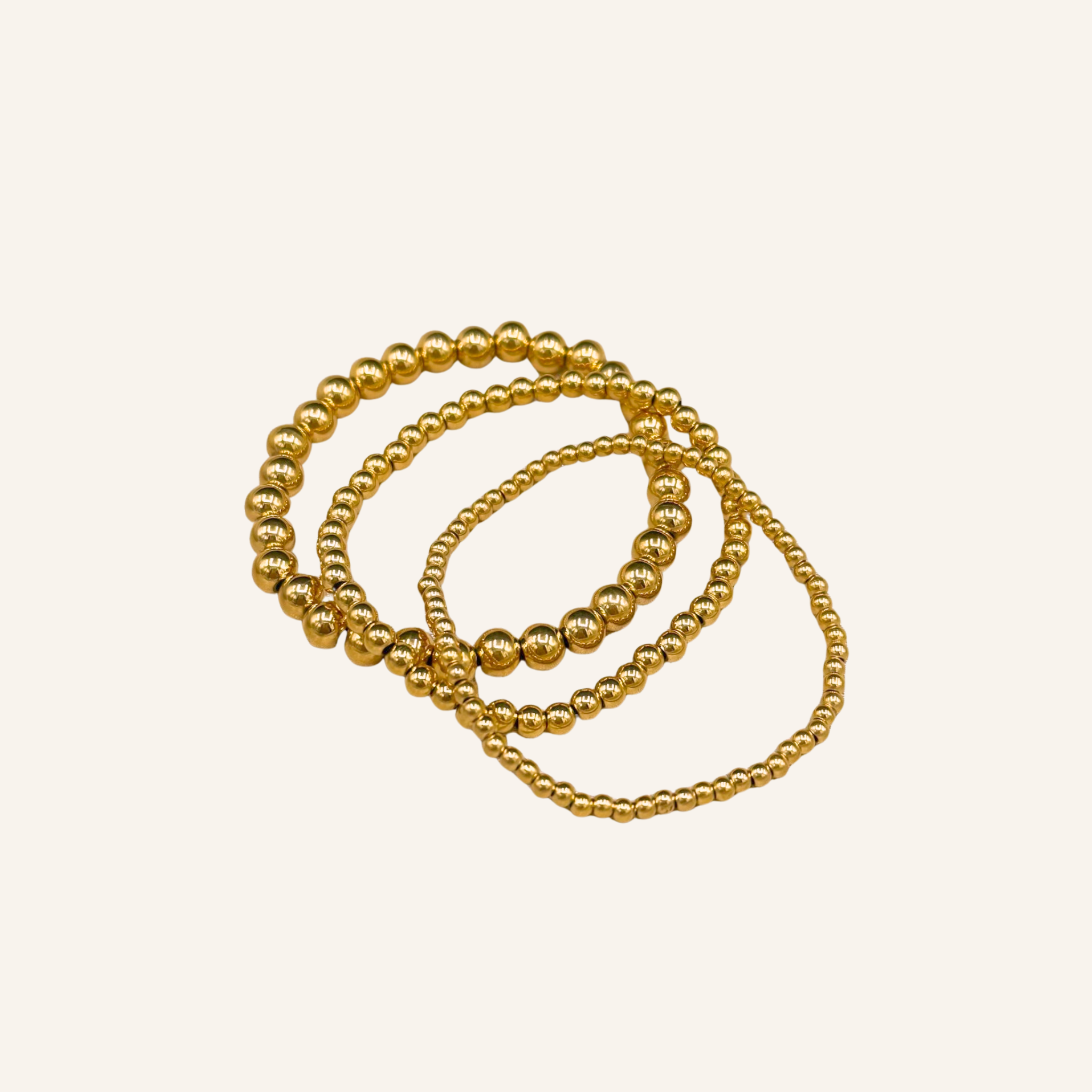 Beschikbaarheid vernieuwenDeze armbandenset met grote ronde kralen is de perfecte mix van playful en chic. De armbanden zijn gemaakt van roestvrij staal en hebben een elastische pasvorm, waardoor ze comfortabel dragen en makkelijk om te doen zijn. Verkrijgbaar met kralen van 3, 4 en 6 mm dik — leuk om los te dragen of samen als set voor een speelse, gelaagde look. Beschikbaar in goud en zilver, en moeiteloos te combineren met al je favoriete sieraden!