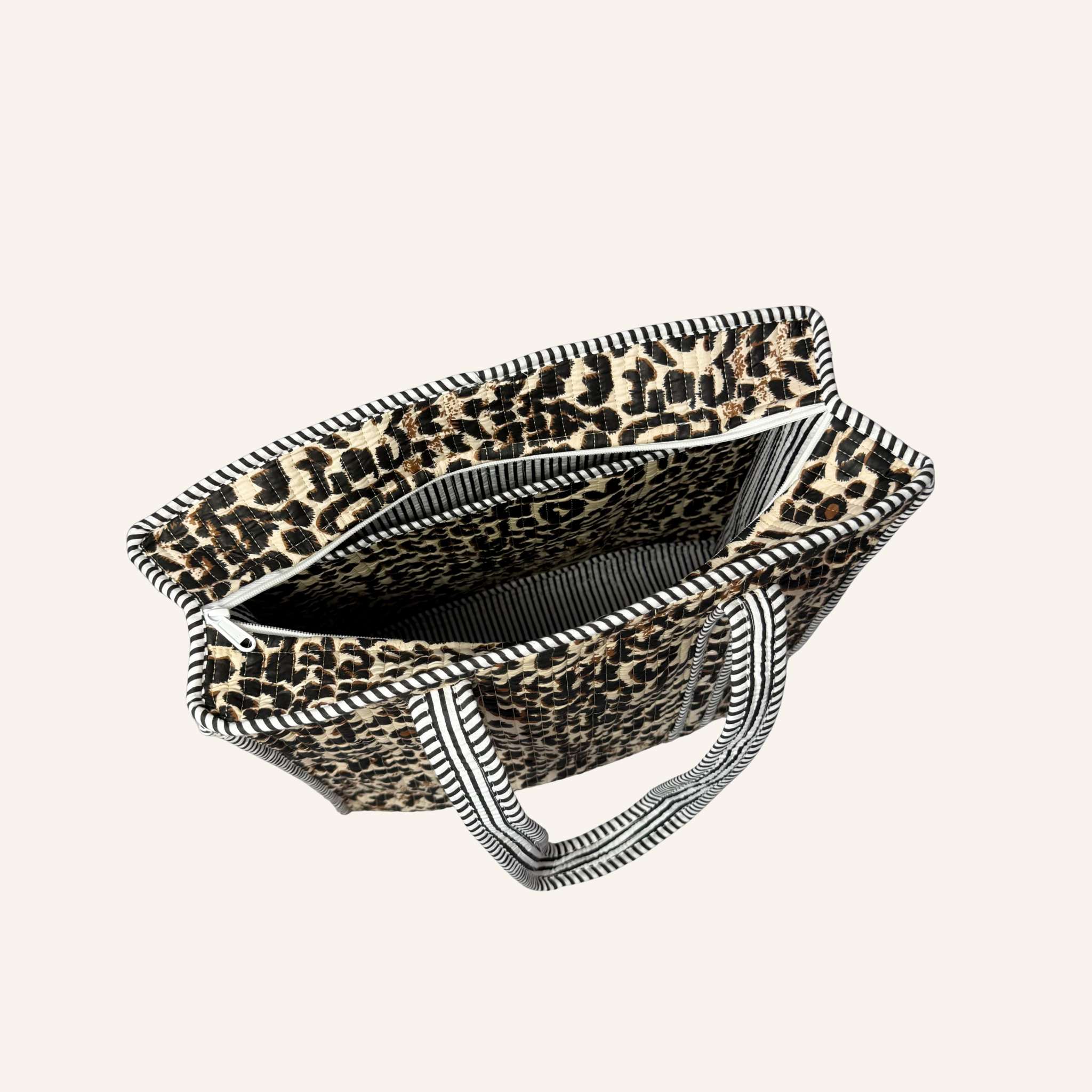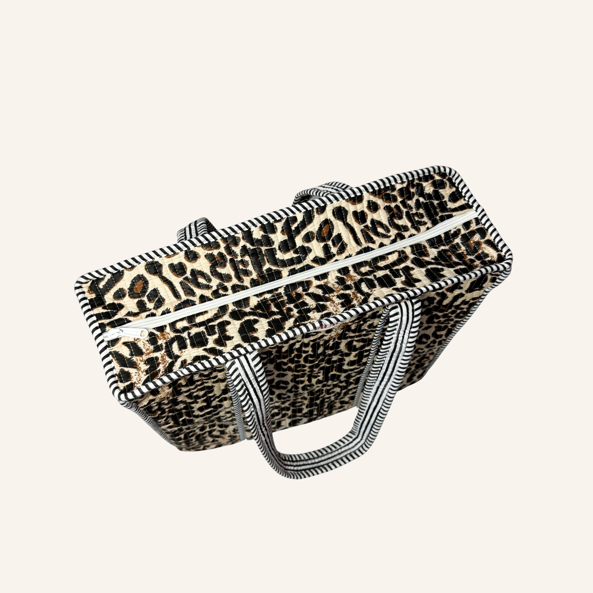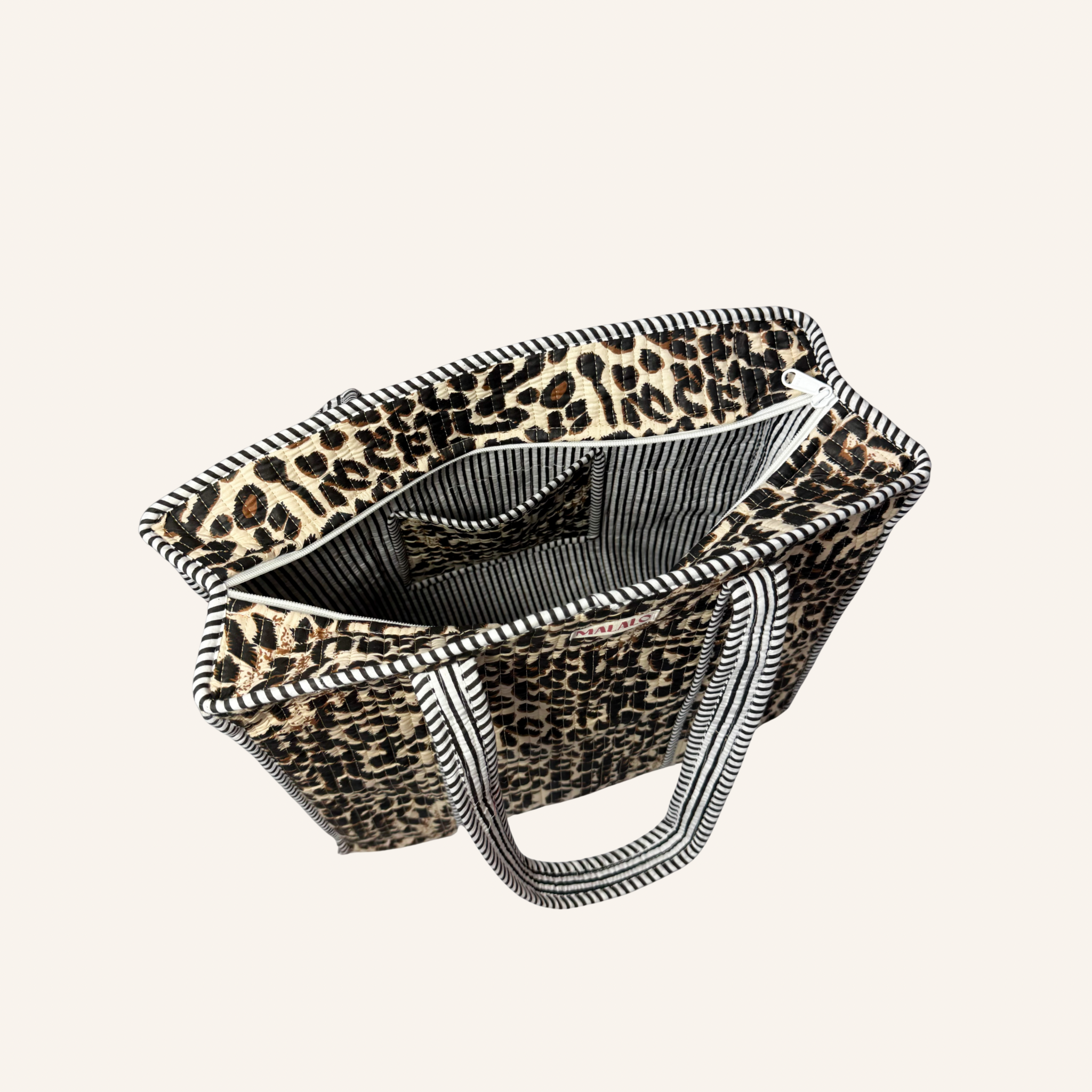 Trendy beige panterprint tas voor school of werk, perfect voor wie houdt van een stijlvolle eye-catcher! Deze tas biedt genoeg ruimte voor boeken en heeft een praktisch laptopvak om je laptop apart op te bergen. Kleine essentials berg je makkelijk op in het kleine binnenvakje, terwijl de ritssluiting ervoor zorgt dat alles netjes op zijn plek blijft. De populaire panterprint geeft elke outfit een fashionable touch. Combineer met de bijpassende toilettas of laptophoes in dezelfde print voor een complete look!