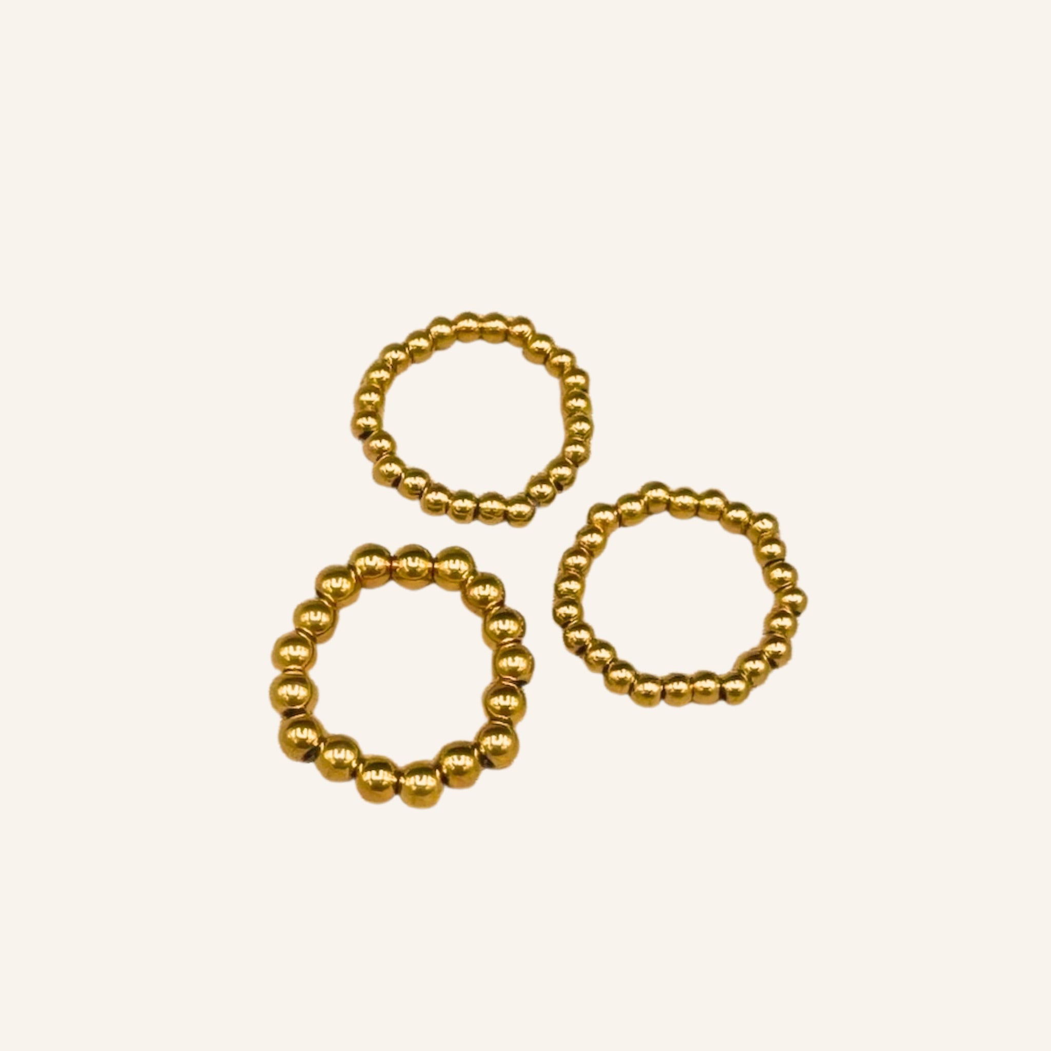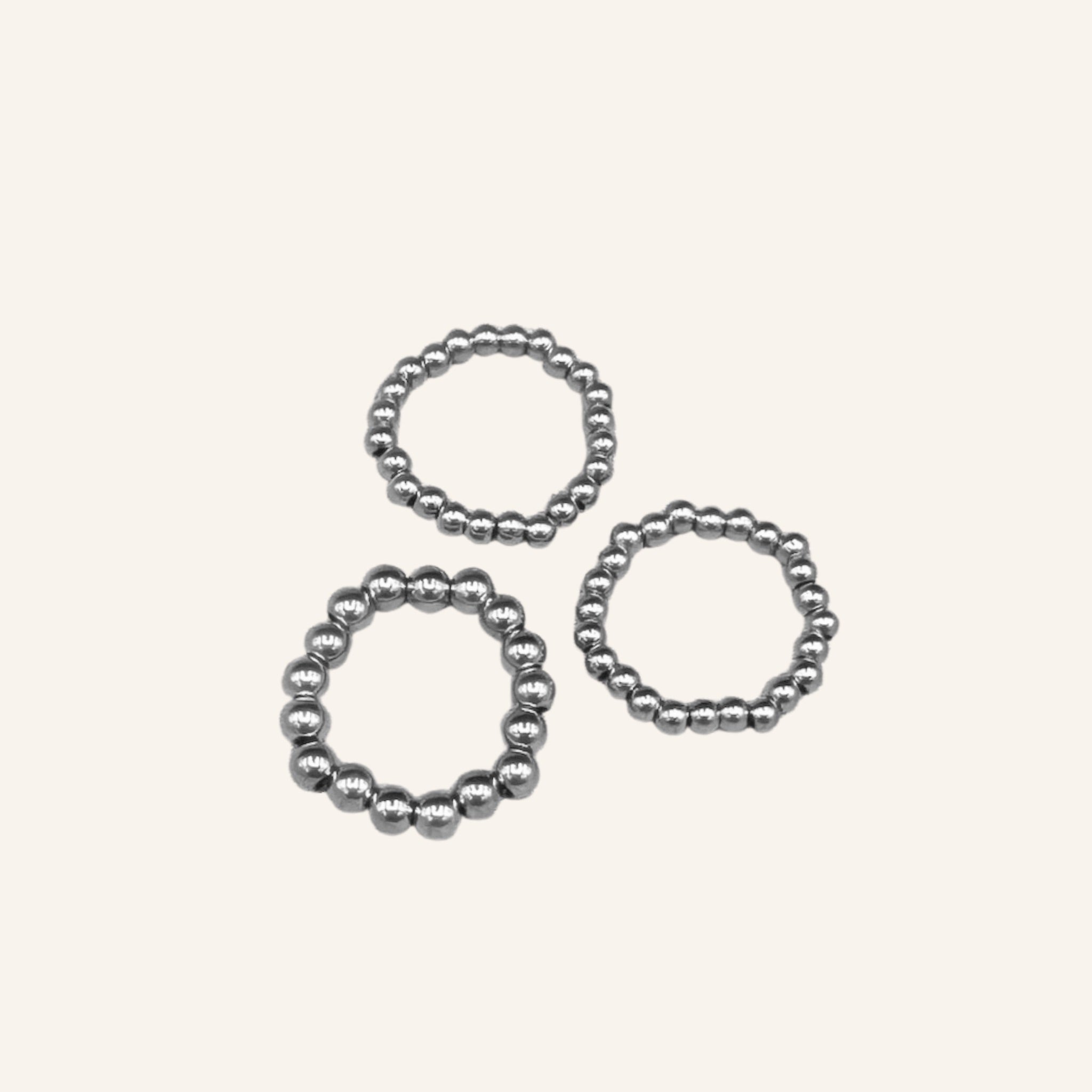 Bubbly, classy en ready voor jouw ringparty – de Bubble Bliss Ring is elastisch, gemaakt van roestvrij staal en verkrijgbaar in goud of zilver. Kies jouw favoriet of ga voor de set van 3 en creëer je eigen blissful vibe.
