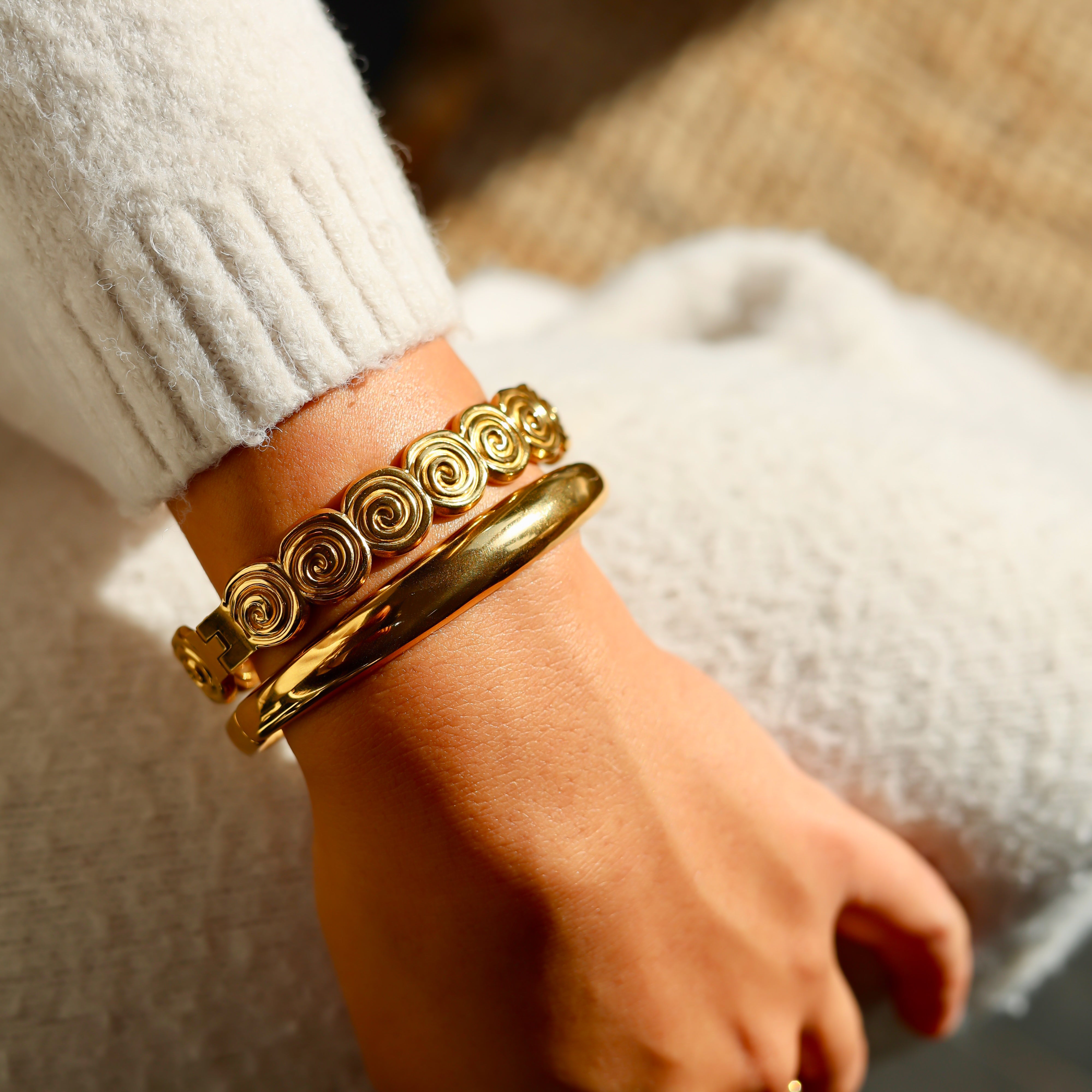 De Classy Cuff Bracelet is een tijdloze bangle die klasse uitstraalt in elke look. Deze gladde, elegante armband is gemaakt van roestvrij staal en sluit met een scharnier sluiting — perfect voor dagelijks gebruik of een stijlvolle avondoutfit. Verkrijgbaar in goud en zilver, en moeiteloos te combineren met andere sieraden voor een gelaagde stijl. Een must-have basic die nooit uit de mode raakt.
