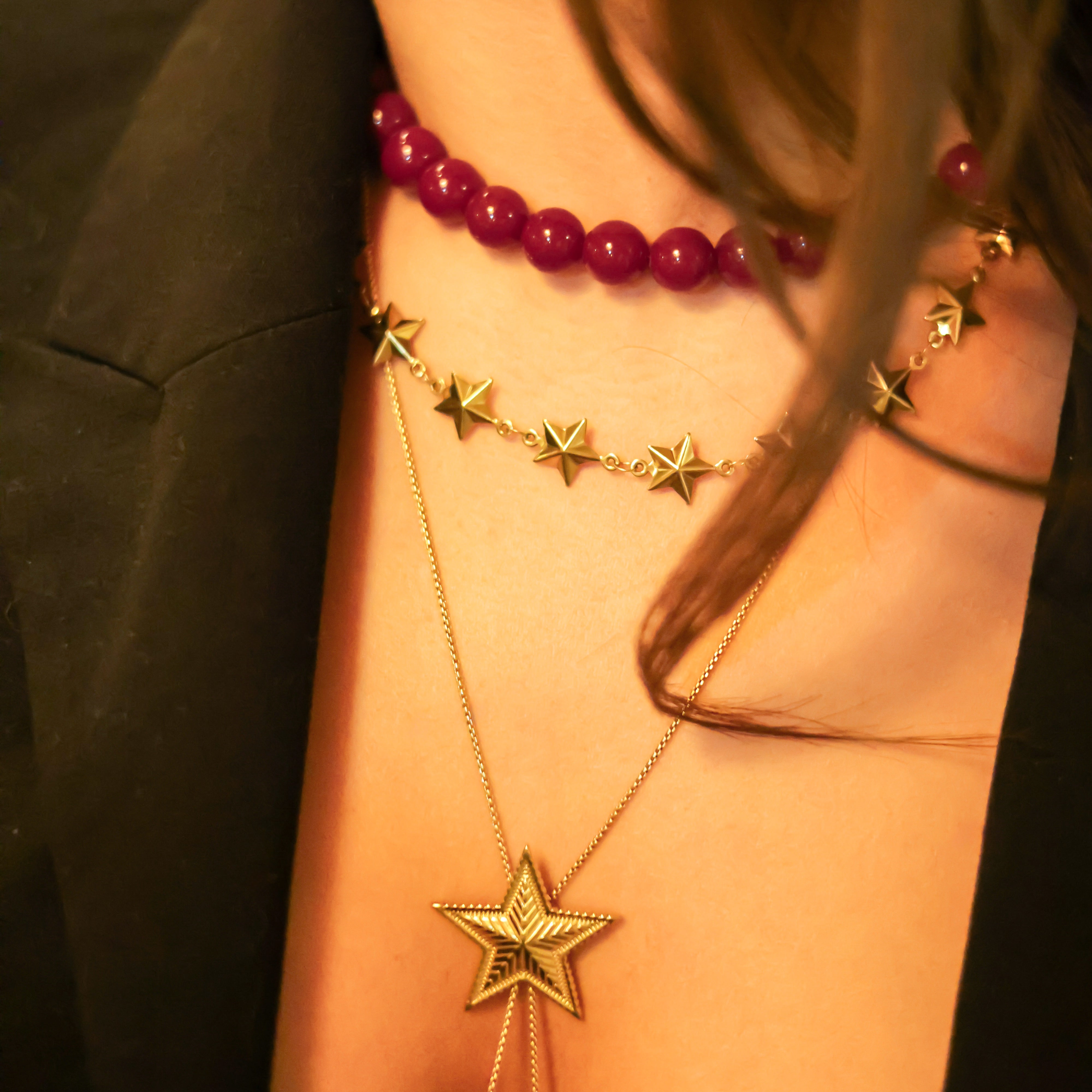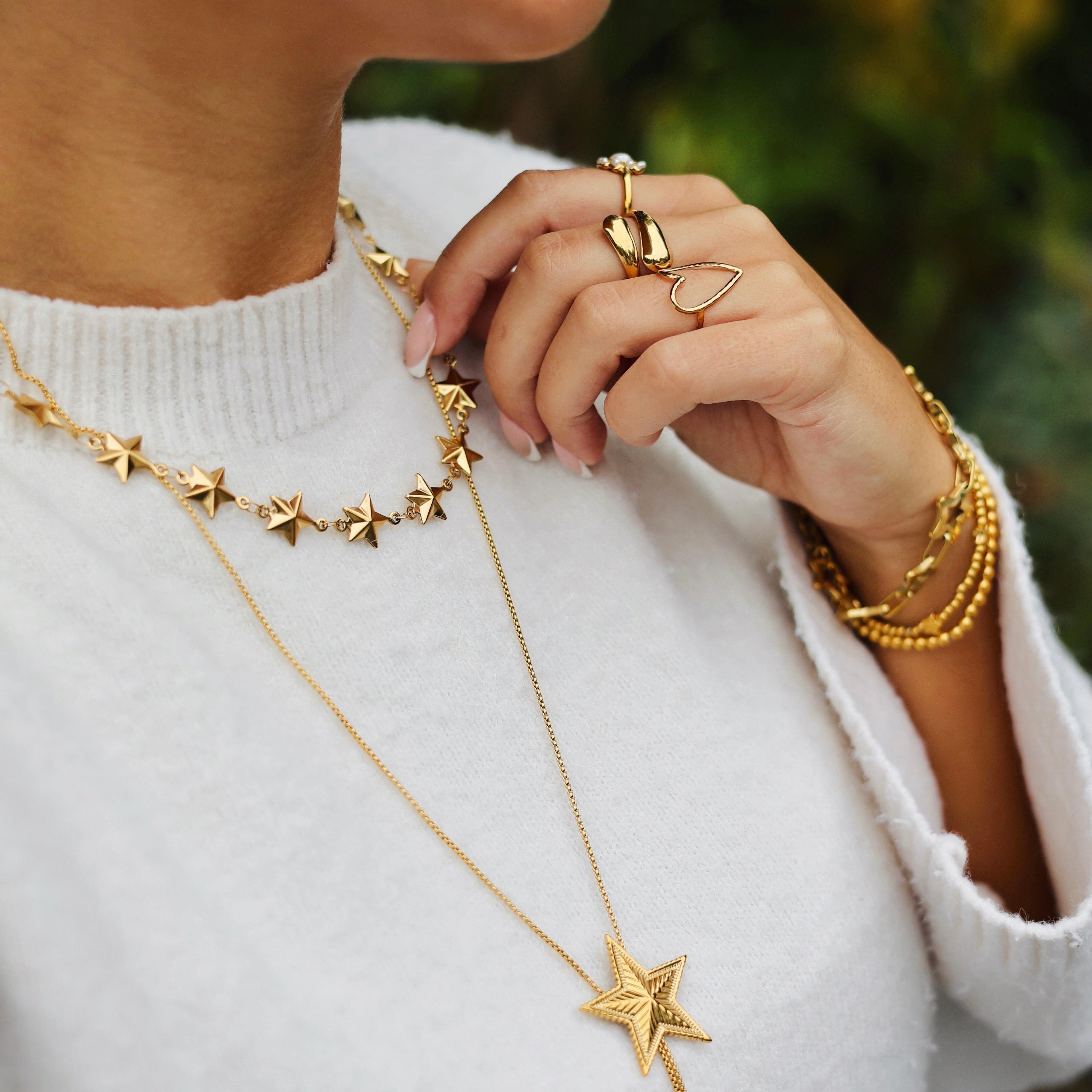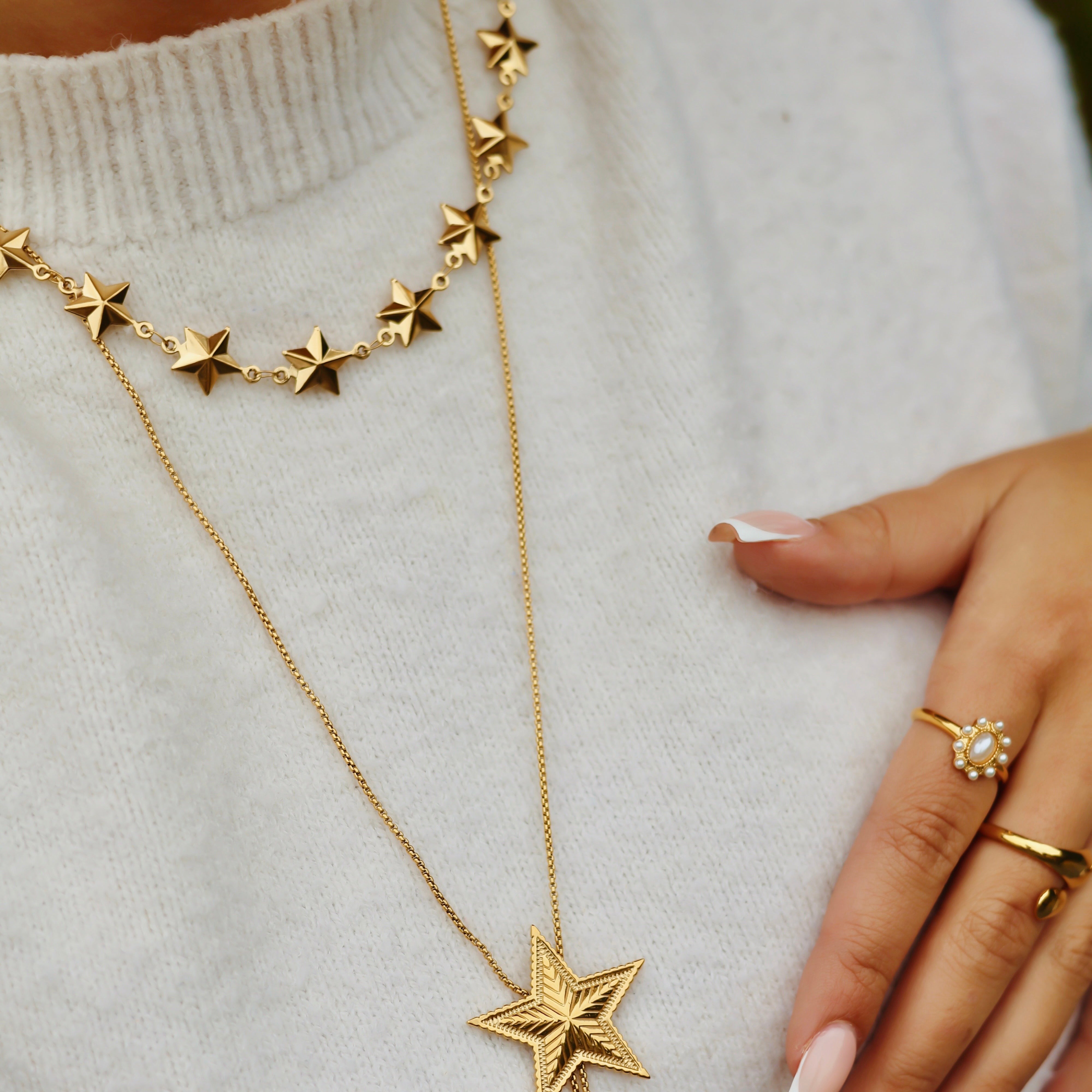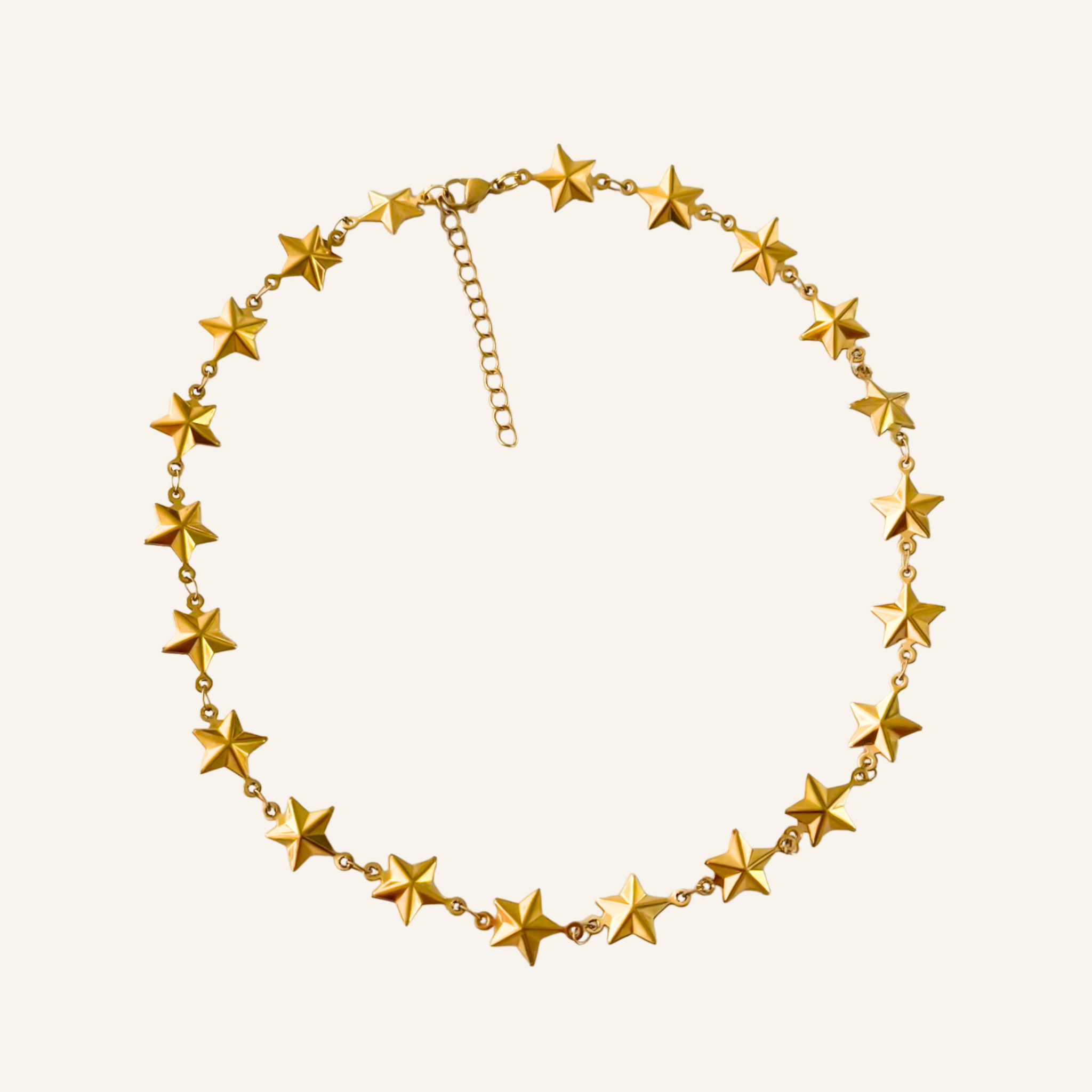 Beschikbaarheid vernieuwenDe Cosmic Necklace is een verstelbare ketting van roestvrij staal, verkrijgbaar in classy goud. De verbonden sterretjes geven een subtiel statement-effect dat perfect past bij zowel een feestelijke als alledaagse look. Mooi op zichzelf, maar ook ideaal om te layeren of te combineren met onze bijpassende Moonlink Magic Bracelet. Deze ketting brengt nét dat beetje sparkle: perfect voor de feestdagen of whenever you feel like shining. Een elegante toevoeging aan je sieradencollectie, die je look moeiteloos compleet maakt.