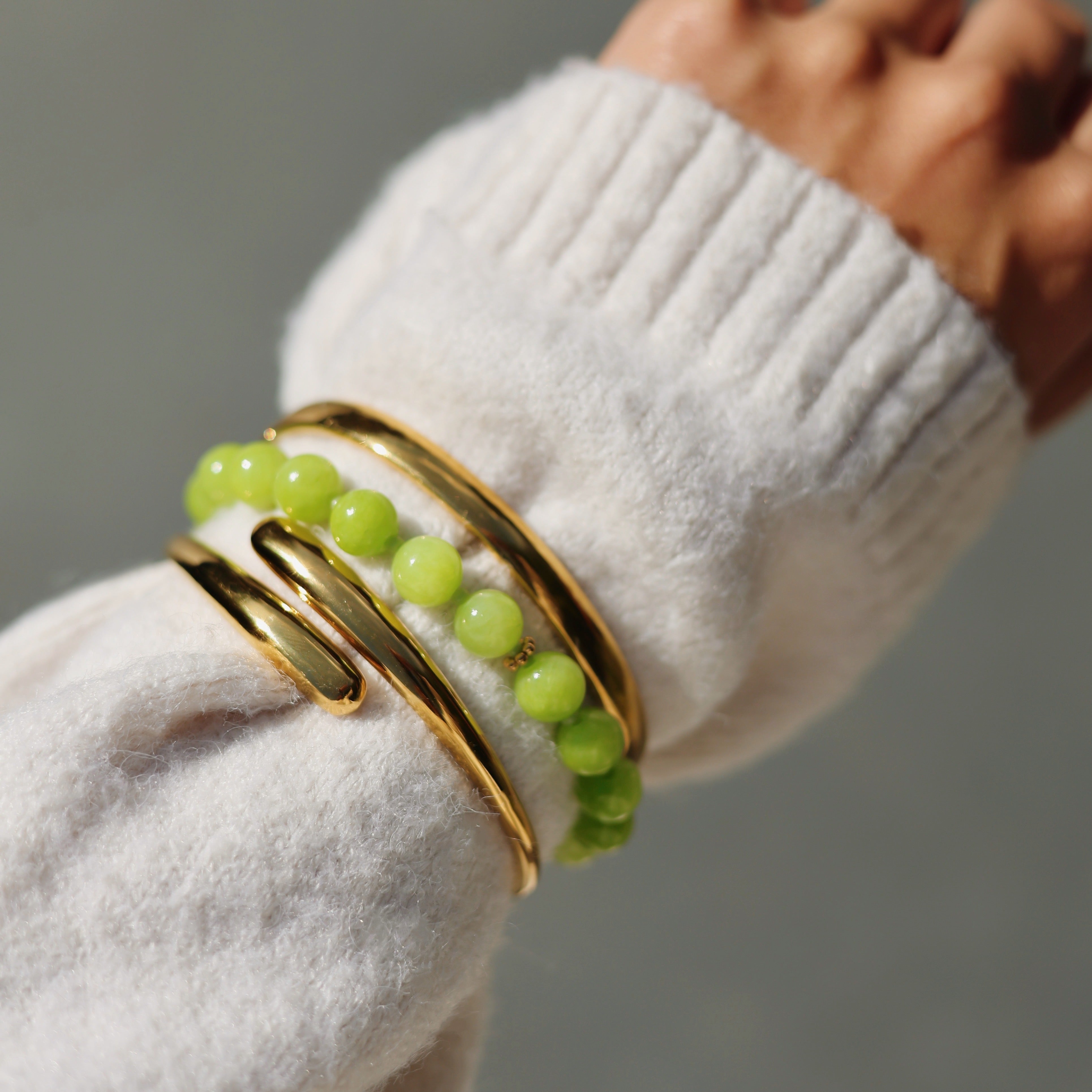 Beschikbaarheid vernieuwenMinimalistisch maar met een twist — deze bangle armband van roestvrij staal valt op door de elegante druppelvormige uiteinden. Draag ‘m solo voor een subtiele look of combineer met andere armbanden voor een bold statement. De armband is verstelbaar, zodat hij altijd perfect aansluit om je pols. Verkrijgbaar in zilver en goud, en prachtig te combineren met de bijpassende Dual Drop Ring voor een complete, stijlvolle set.