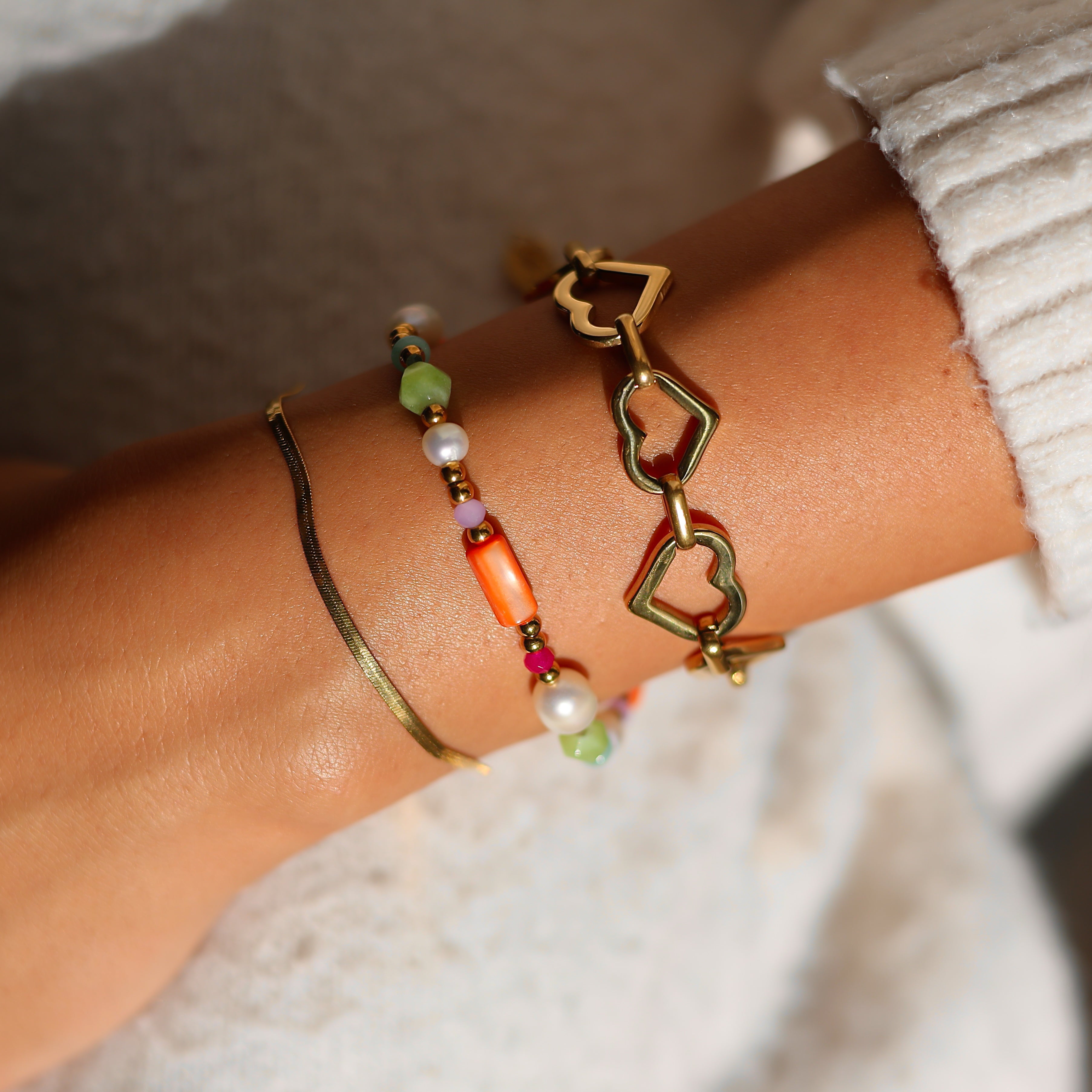Beschikbaarheid vernieuwenEen armband die je hart sneller laat kloppen: de Fierce Bracelet. Linked chain vibes met een romantische twist. Gemaakt van stainless steel in goud of zilver, met gelinkte hartjes die zowel lovely als stoer ogen. Trendy en veelzijdig, ideaal om te combineren met je andere favoriete sieraden.