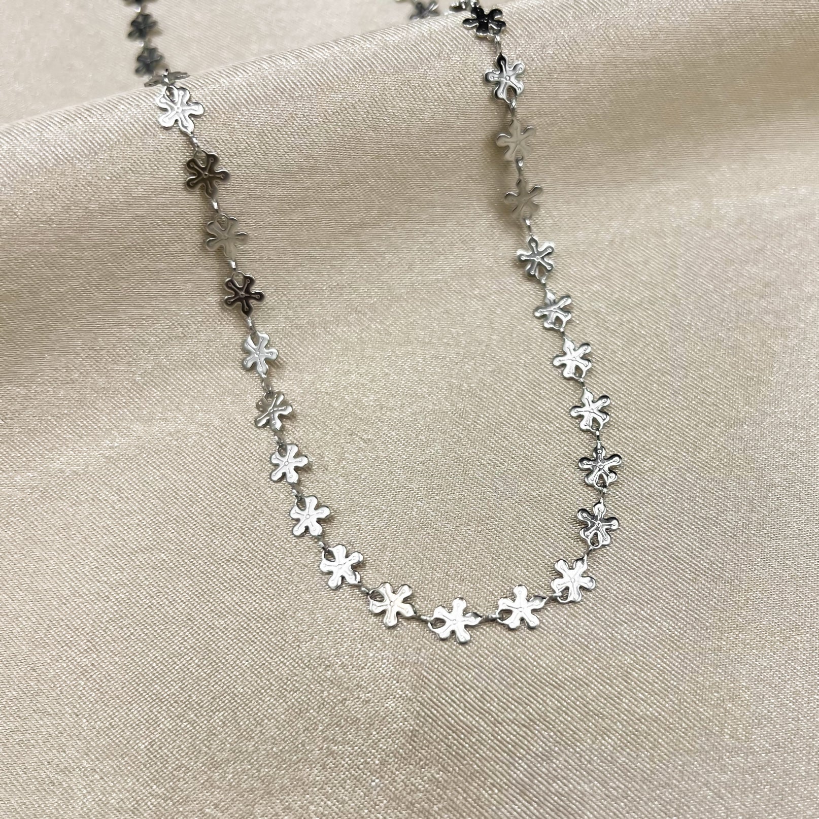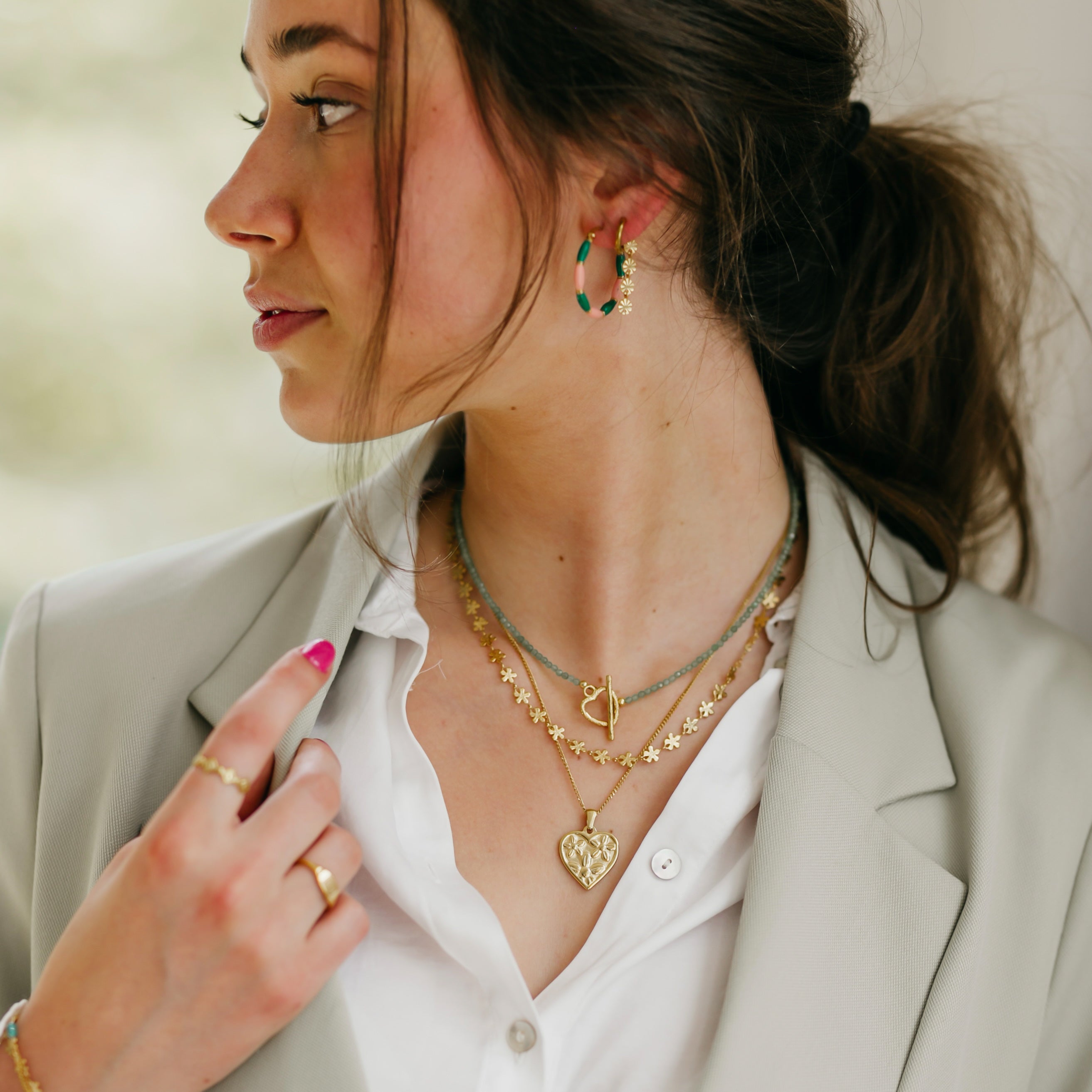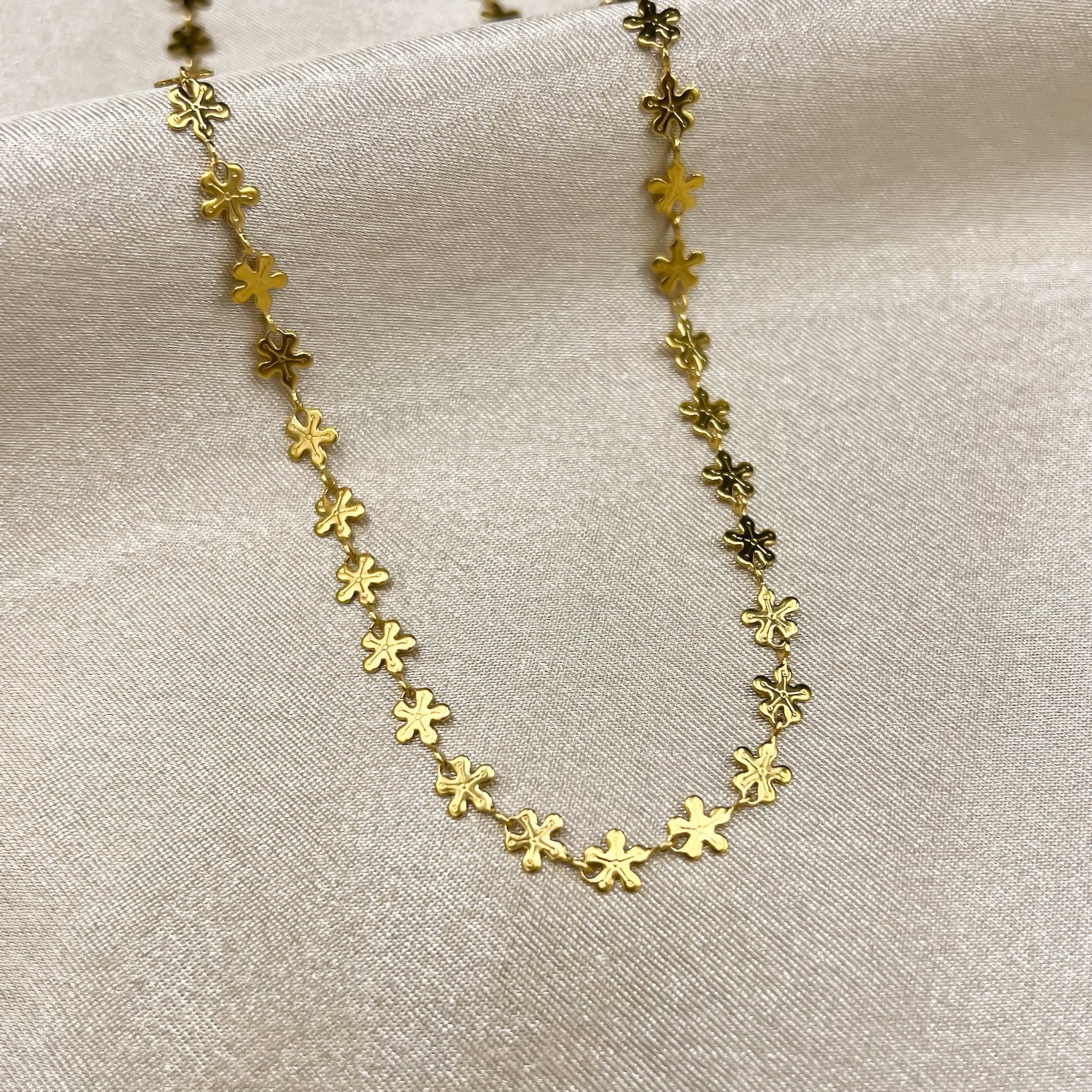 Beschikbaarheid vernieuwenDe Floral Necklace combineert verfijnde bloemen met een moderne twist. De ketting is gemaakt van roestvrij staal (stainless steel) en is verkrijgbaar in zowel goud als zilver. Dankzij de verstelbare sluiting draag je ‘m precies zoals jij wilt – solo of gecombineerd met andere sieraden. De subtiele bloemen geven een frisse, minimal touch aan elke look. Ideaal voor lente- en zomerdagen, maar net zo goed te dragen het hele jaar door. Tijdloos en makkelijk te stylen!