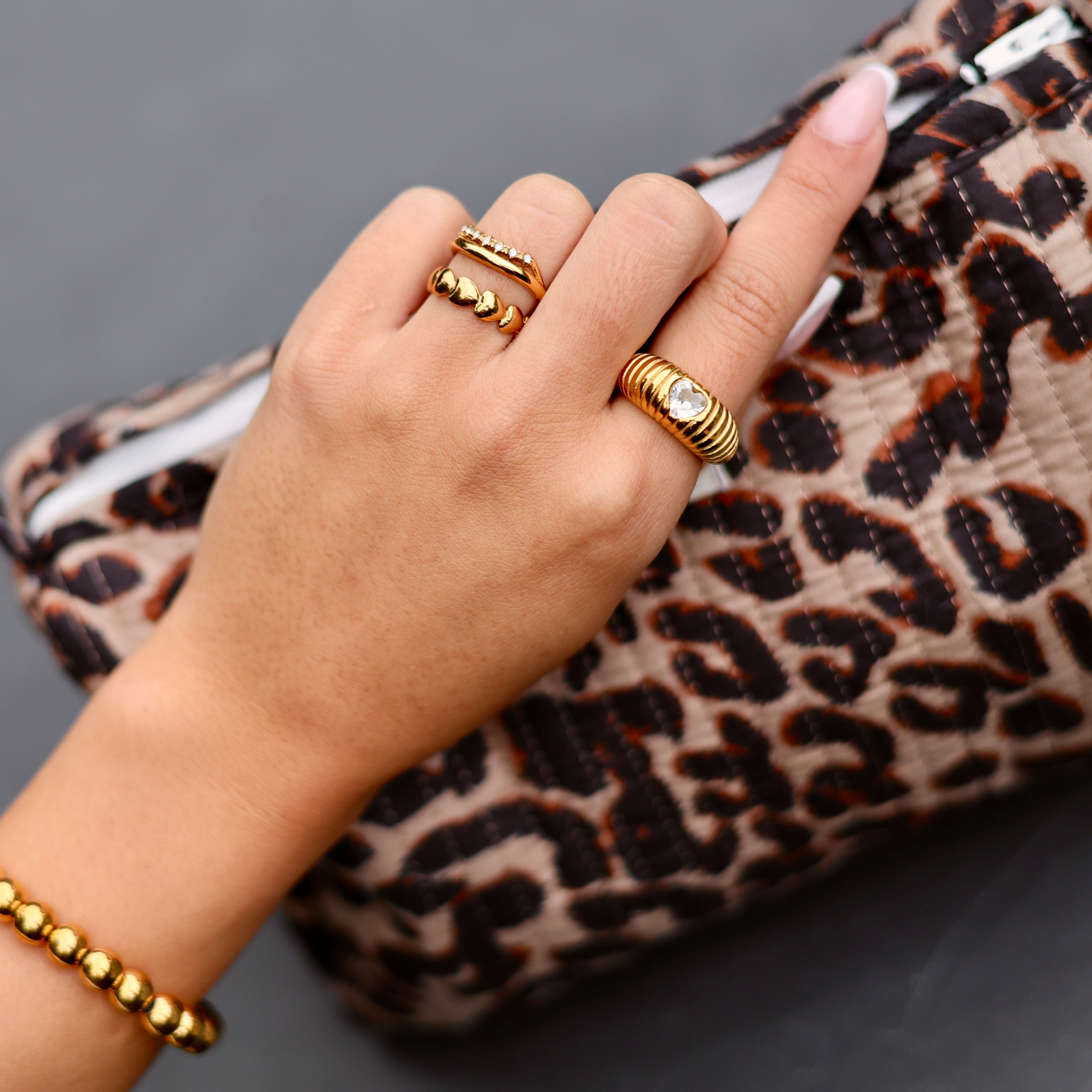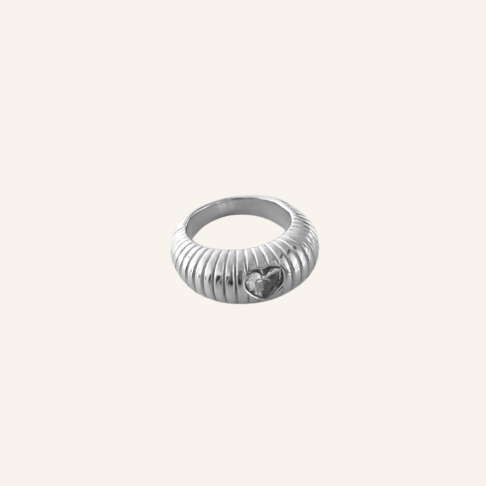 Beschikbaarheid vernieuwenEen chunky ring met karakter: de Love Chunk Ring is gemaakt van roestvrij staal en heeft een opvallende, gestreepte structuur die meteen in het oog springt. In het midden schittert een subtiel hartvormig diamantje, een romantisch detail. Verkrijgbaar in zowel goud als zilver, en perfect om je ring stack net dat beetje extra boldness te geven. Of je nu all out gaat of hem solo draagt.