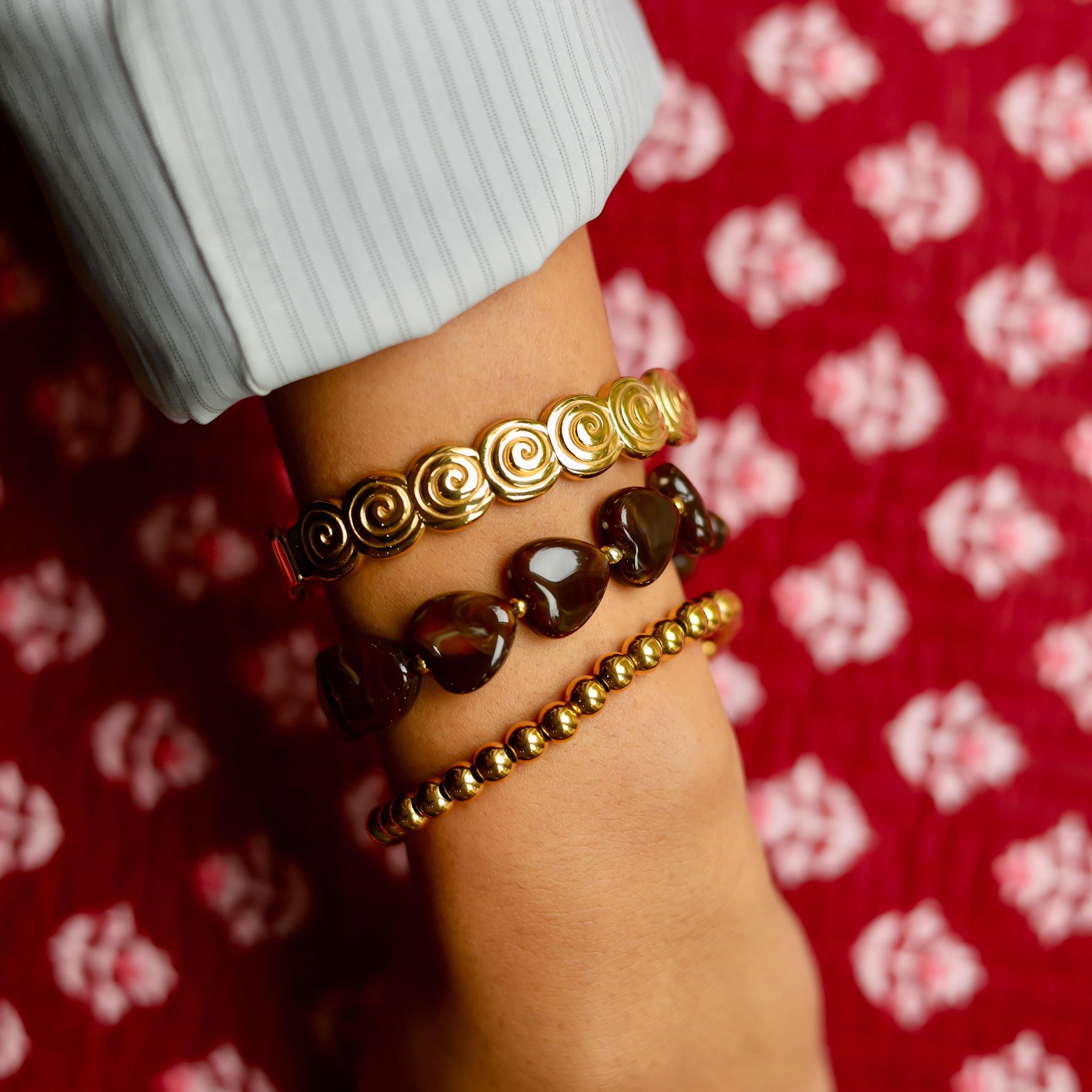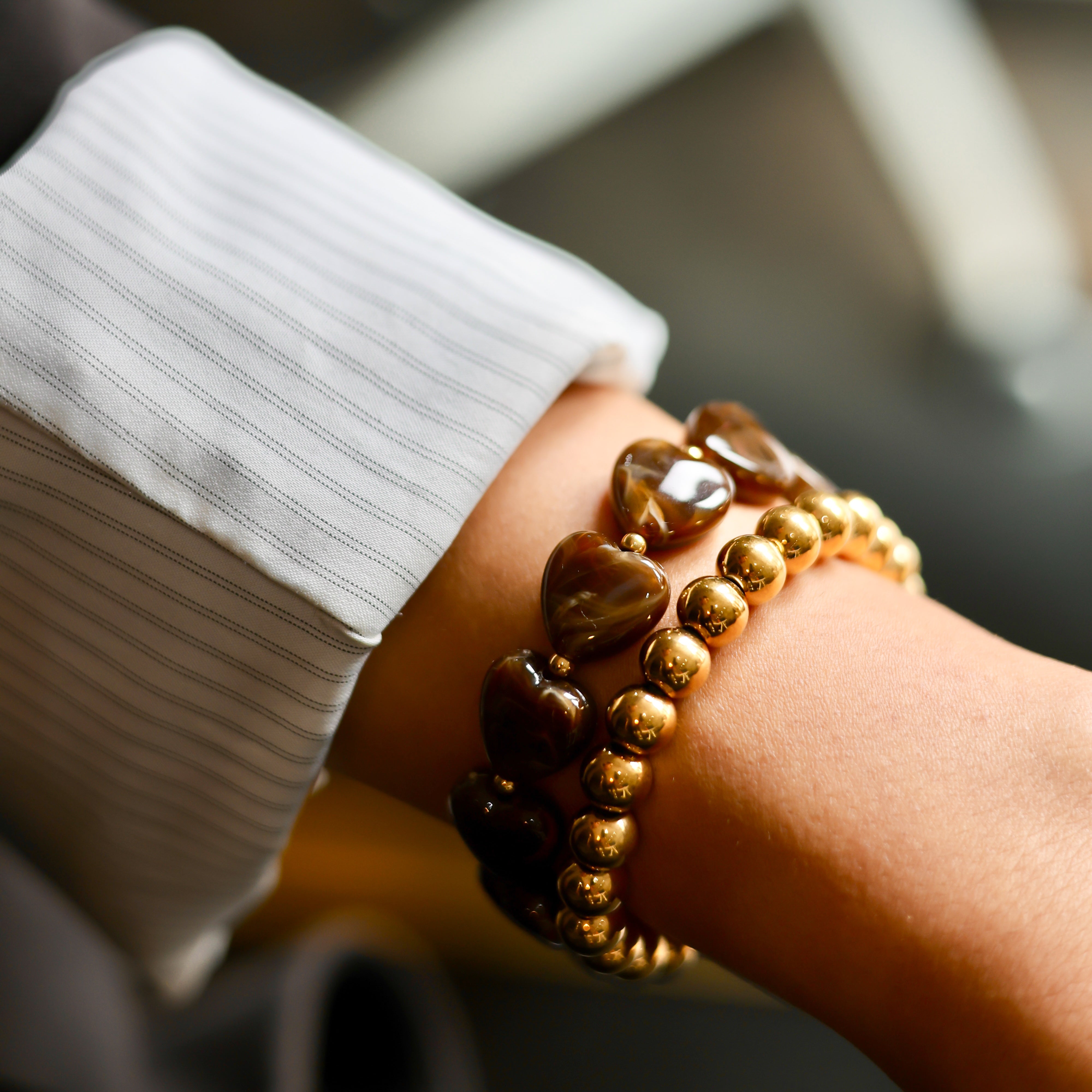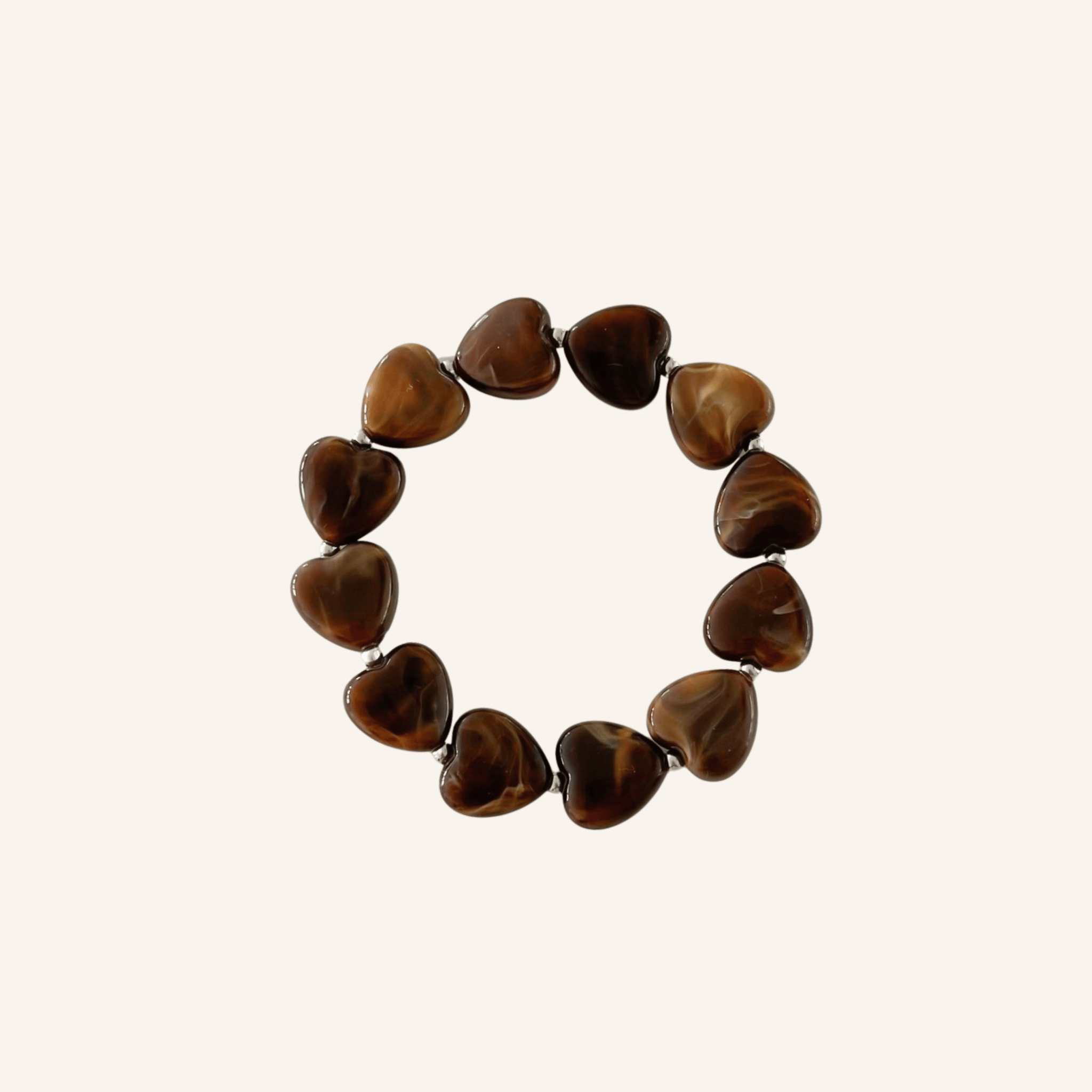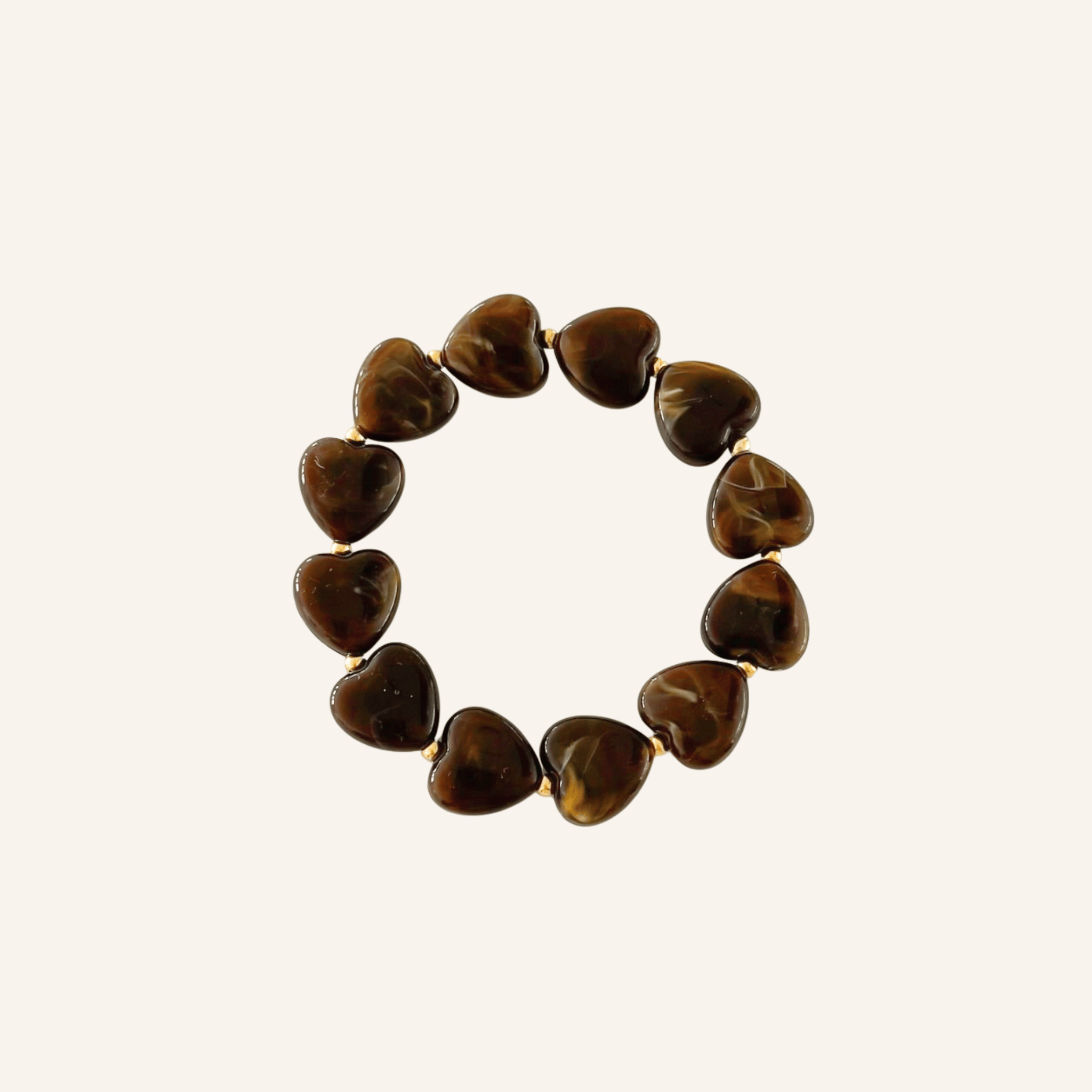 Beschikbaarheid vernieuwenVerras je look met dit armbandje van bruine hartjeskralen. De glanzende bruine hartjes geven een warme, cosy vibe, terwijl de kleine roestvrijstalen kralen zorgen voor een subtiele sparkle. Dankzij het elastische design schuif je ’m zo om, comfy én stylish! Leuk om te mixen met andere armbanden of gewoon solo te dragen als eyecatcher.