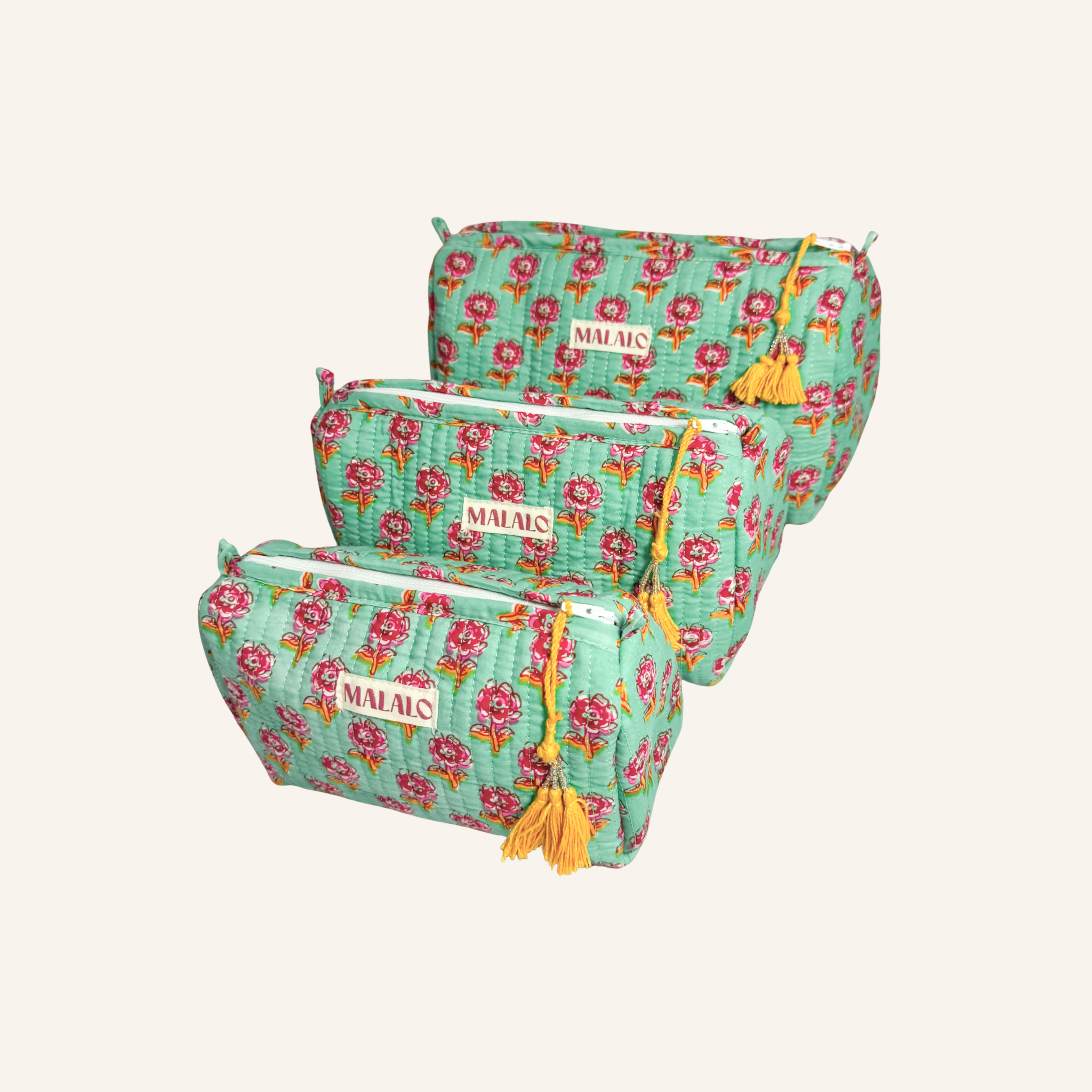 Beschikbaarheid vernieuwenDeze mintgroene toilettasjes met speelse roze/oranje bloemetjes brengen meteen kleur in je koffer, badkamer of handtas. Dankzij de ritssluiting, vakjes en de verschillende maten bewaar je make-up, verzorgingsproducten en kleine essentials altijd georganiseerd. Verkrijgbaar per stuk of als set van 3! De vrolijke floral print past perfect bij de Mint Blossom Bag en de matching laptophoes, waardoor je een complete en supercute travel set creëert.