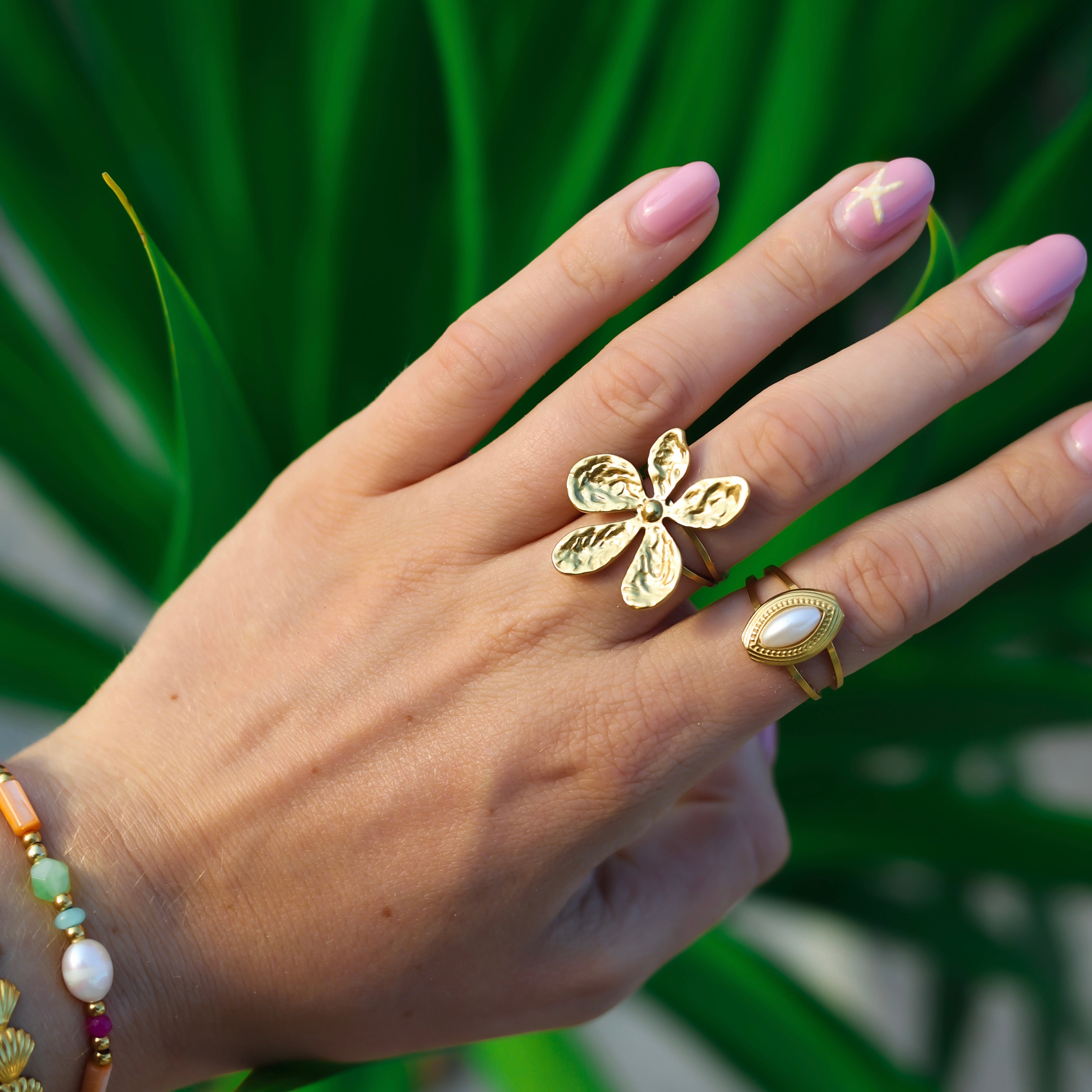 Een vleugje vintage met een moderne touch! De combinatie van een ovale vorm, een parel en goudkleurig roestvrij staal maakt deze ring classy en cute tegelijk. De ring is verstelbaar en geeft elke outfit net wat meer elegantie. Op zoek naar een tijdloos statement? Dan is deze ring precies wat je nodig hebt!