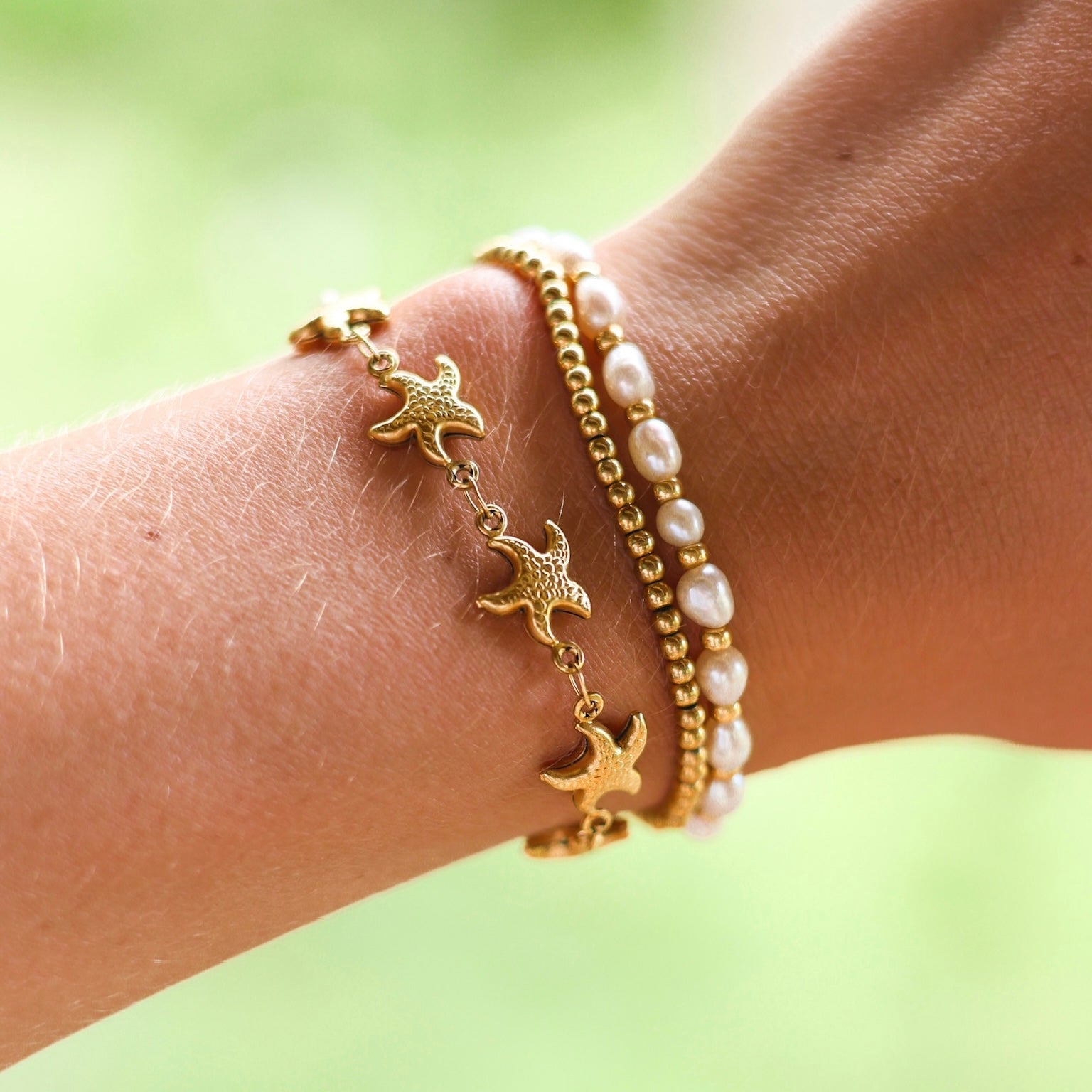 Beschikbaarheid vernieuwenDe perfecte mix van classy en easy: dit elastische armbandje met echte zoetwater parels is een subtiele eyecatcher voor elke dag. Gemaakt van elastiek, dus makkelijk om te doen en past iedereen. Verkrijgbaar in goud en zilver — ideaal om solo te dragen of te combineren in een armparty met onze andere armbandjes. Elegant, tijdloos én super comfortabel!