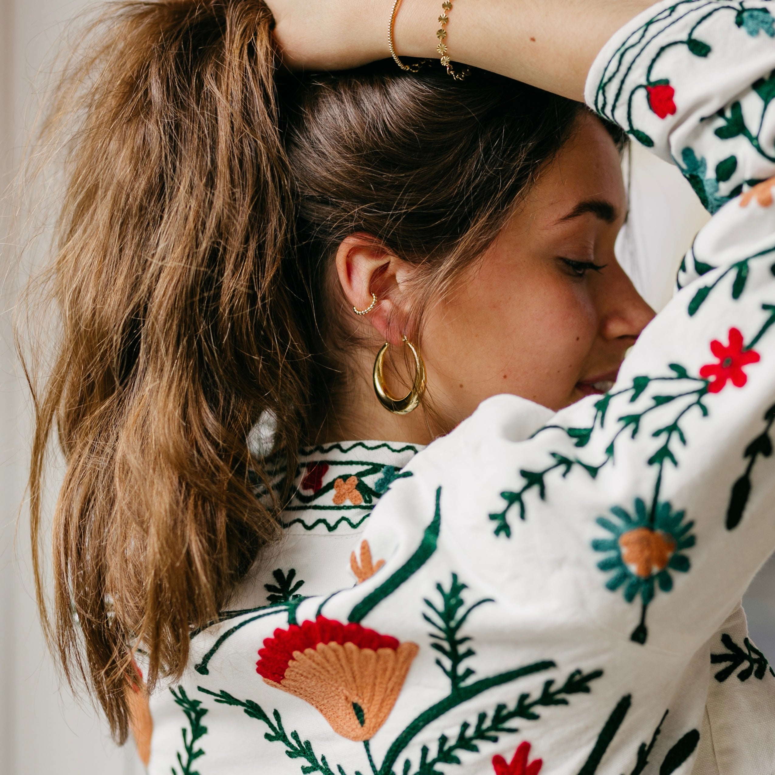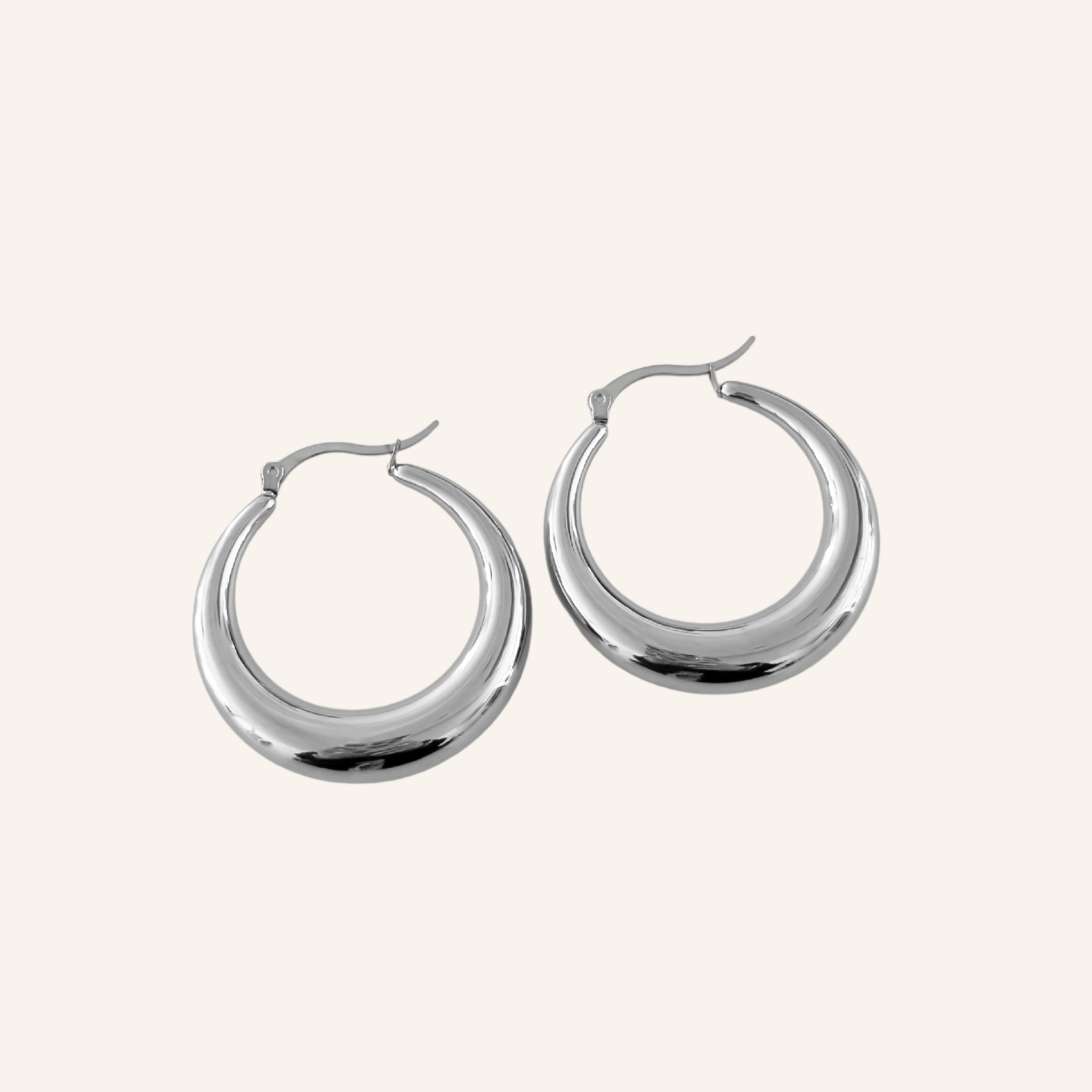 Deze hoops tillen je look moeiteloos naar een hoger niveau. Gemaakt van roestvrij staal (stainless steel) en verkrijgbaar in goud en zilver. De Sleek Hoop Earrings combineren een minimalistisch design met een classy uitstraling – perfect voor elke gelegenheid. Draag ze solo voor een clean statement of mix ze met andere oorbellen voor een speelse earparty. Ze worden per paar verkocht en zijn een subtiele eyecatcher in elke sieradencollectie.