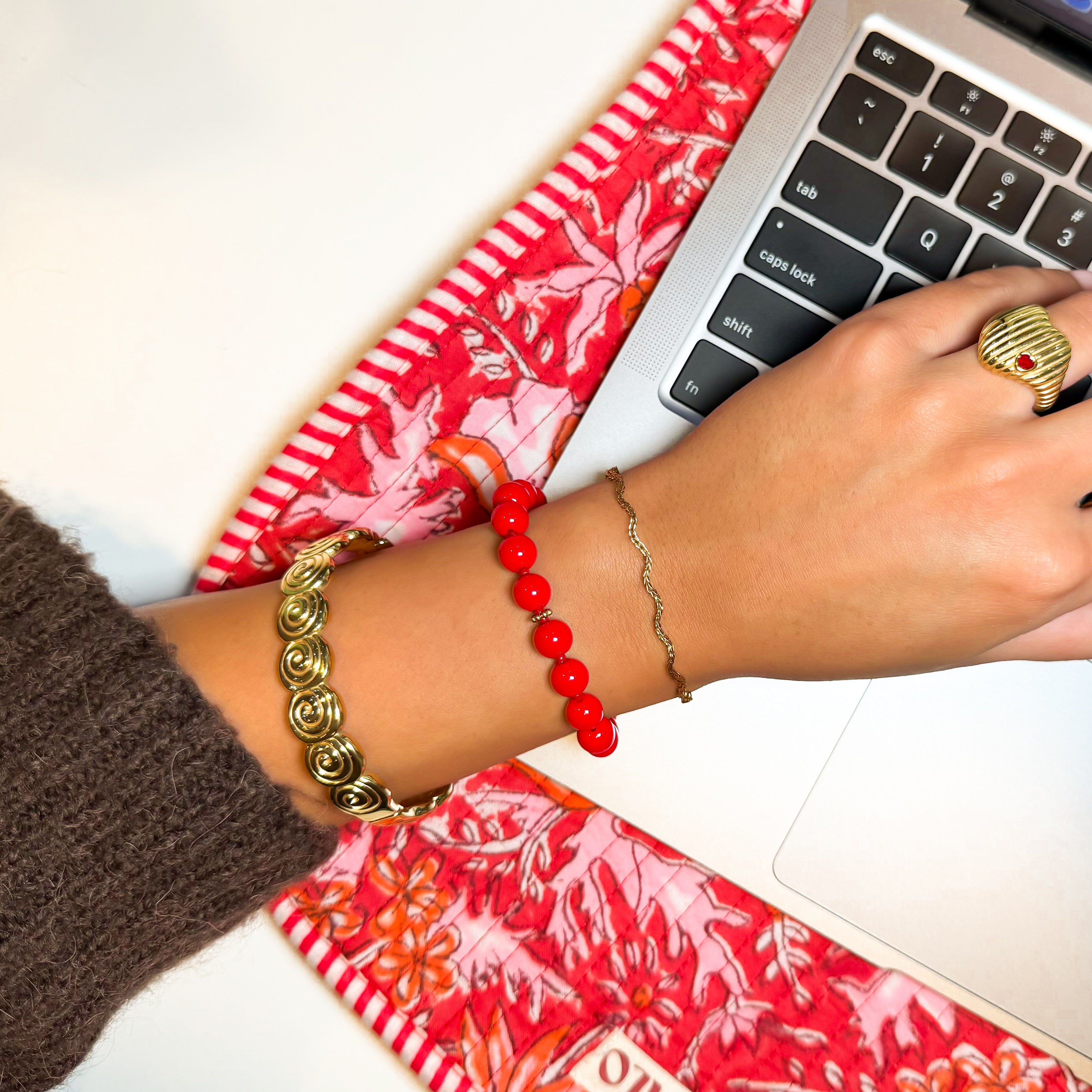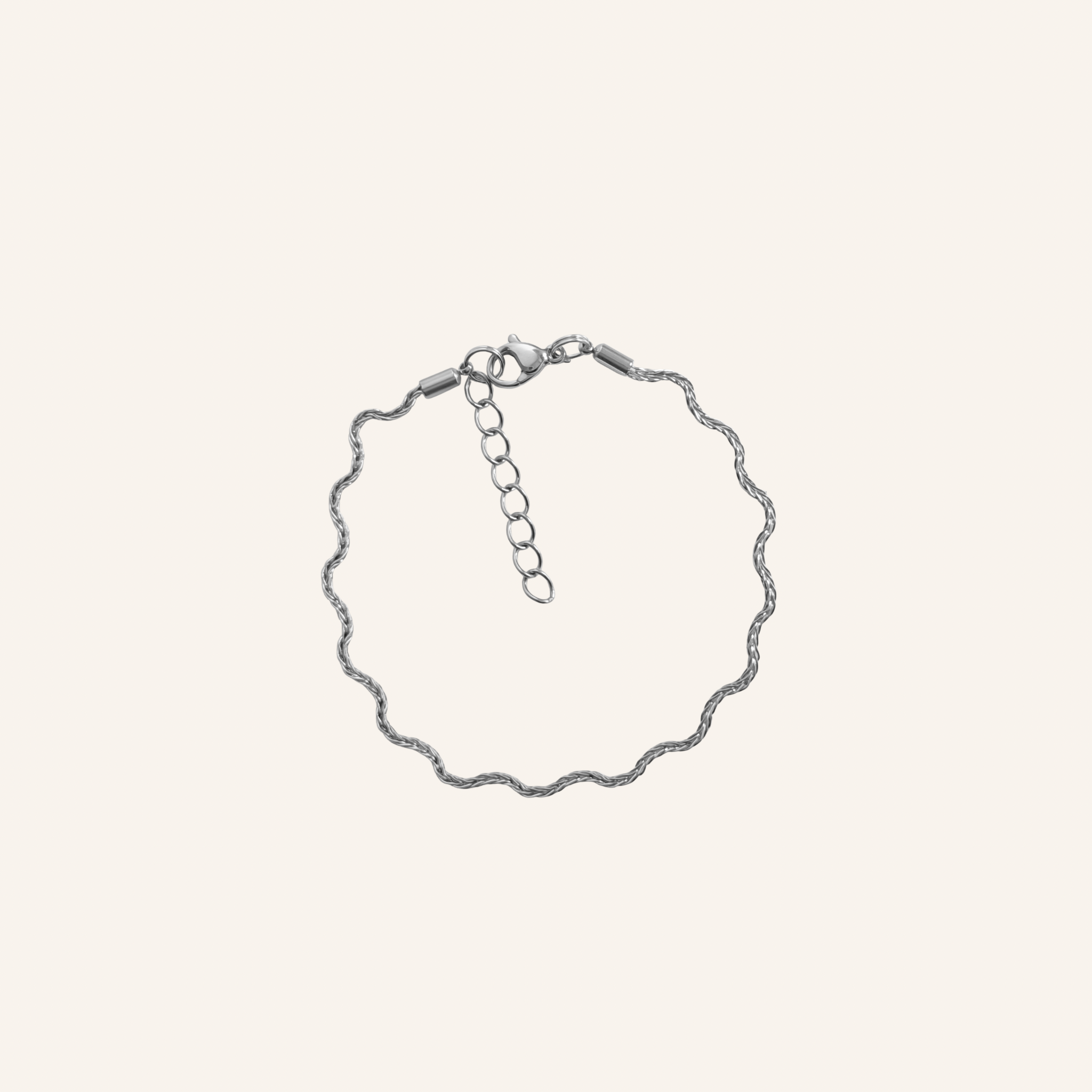 Beschikbaarheid vernieuwenDit subtiele armbandje met golvend effect is de perfecte must-have wie houdt van minimalistische, trendy armbandjes. Deze bracelet is gemaakt van roestvrij staal en verkrijgbaar in goud en zilver, wat hem perfect maakt voor zowel casual als party looks. De elegante golfvorm geeft een delicate uitstraling en laat zich moeiteloos combineren met andere minimalistische sieraden voor een stylish stacked effect.